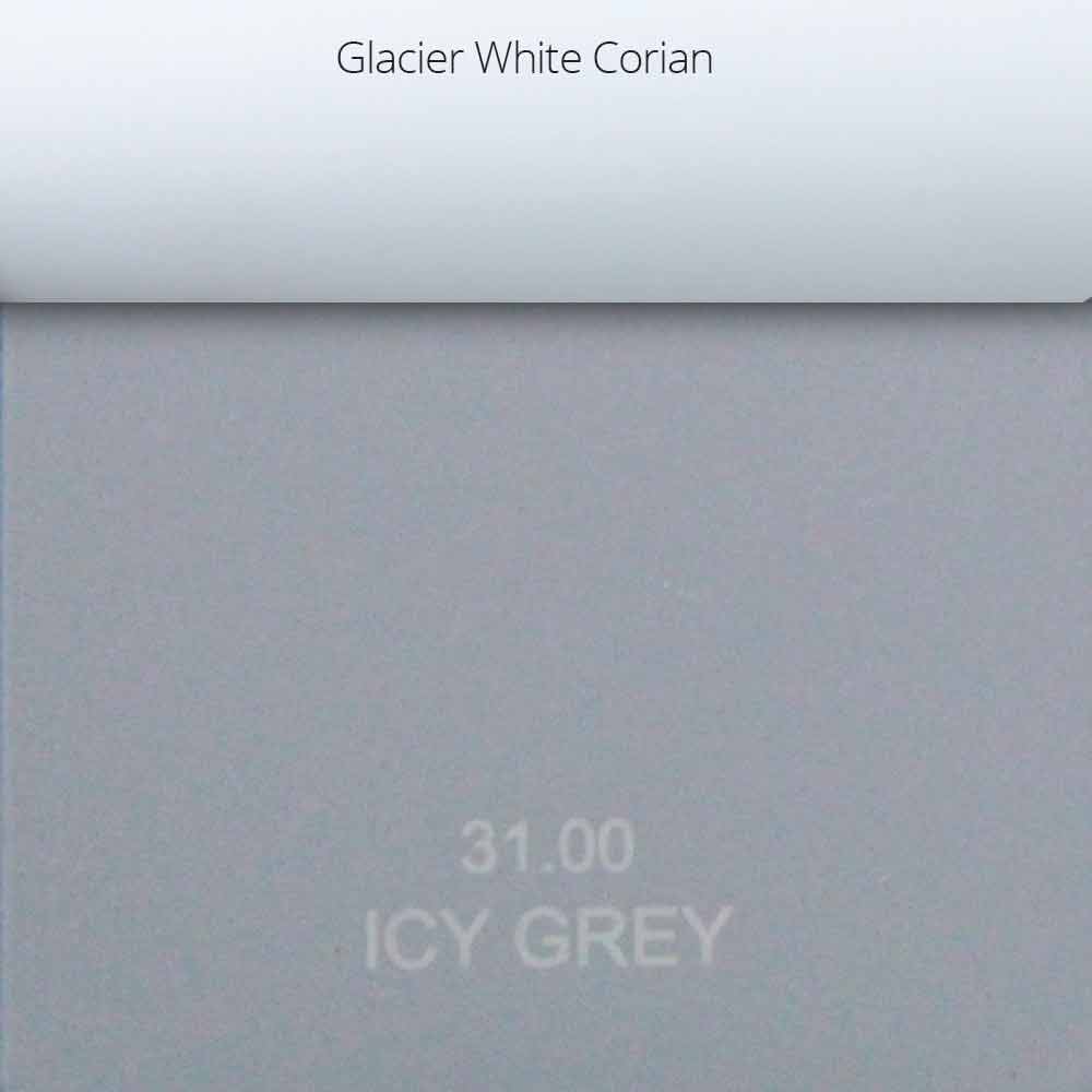 Icy Gray + Glacier White Corian®: matt cold light gray finish with white DuPont ⢠Corian® elements;