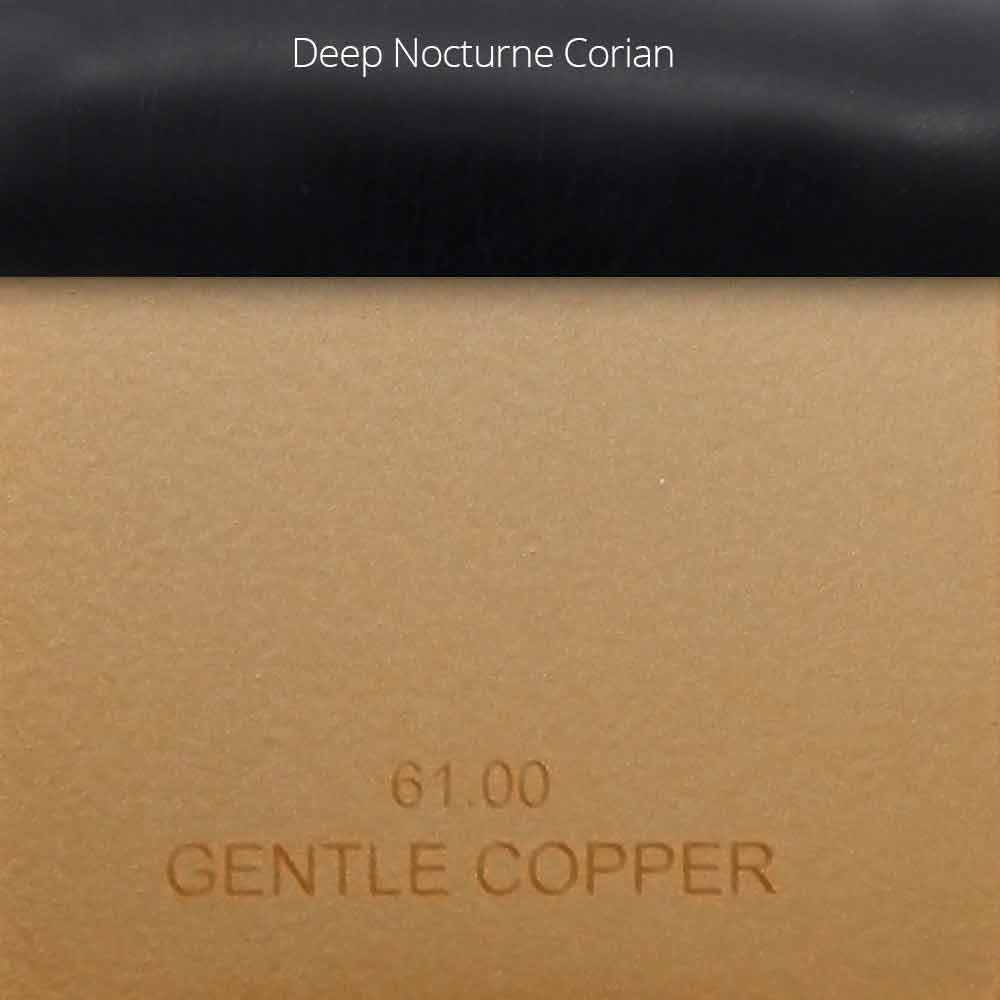 Gentle Copper + Deep Nocturne Corian®: matt light copper metallic finish with elements in black DuPont ⢠Corian®;