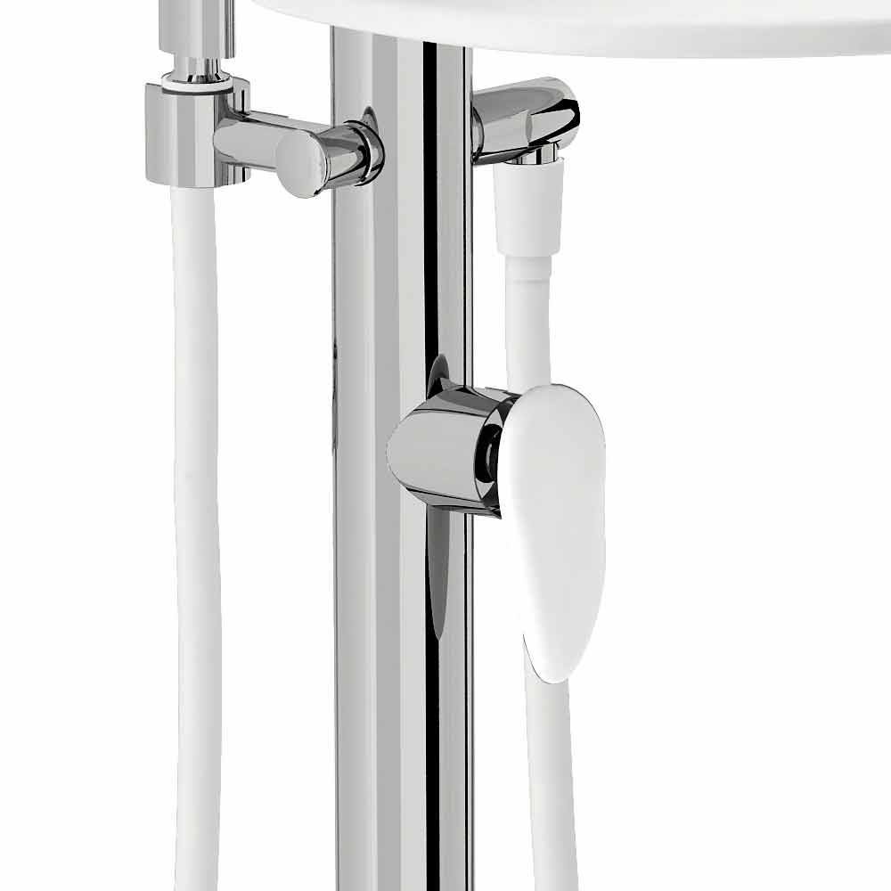 This mixer is installed on the floor, equipped with a jet breaker; system with Fast & Easy Clean anti-limescale nozzles, for removing limescale with a simple hand gesture and ceramic disc cartridge .