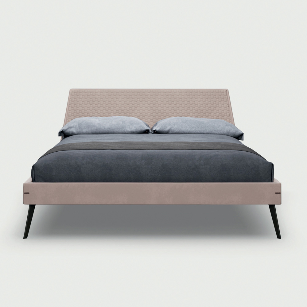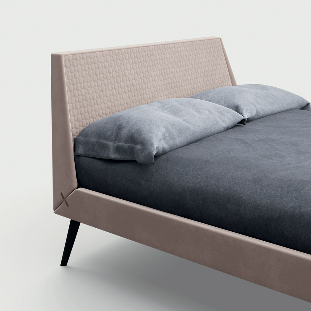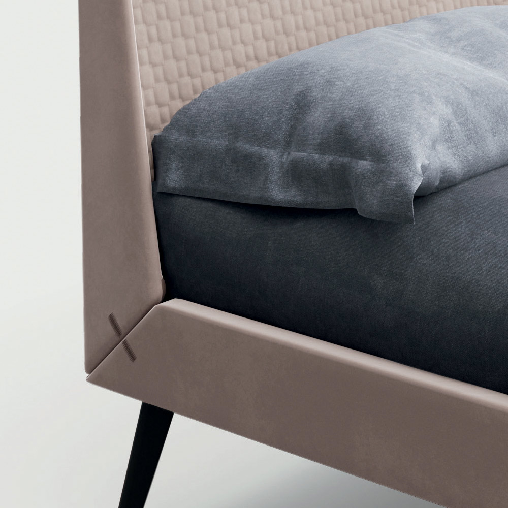 natural comfort of form and function . The bed is underlined by two different levels of padding that join in the headboard which in turn is linked to the base decorated with wonderful stitched inserts that embellish its shapes. The elements that complete the composition enrich the aesthetics of the bedroom with a