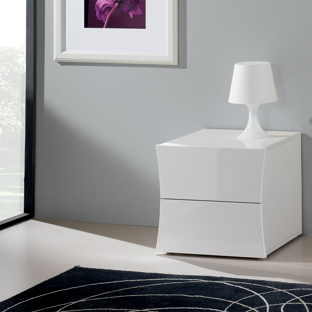 The 2-drawer bedside table is characterized by its arch-shaped design with soft and curved lines, with an attractive and interesting look.