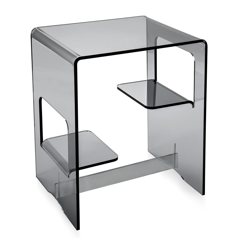 Modern design bedside table or coffee table in transparent or smoked plexiglass made in Italy.