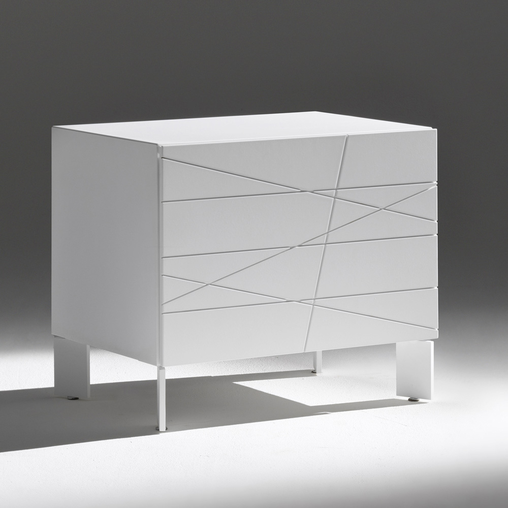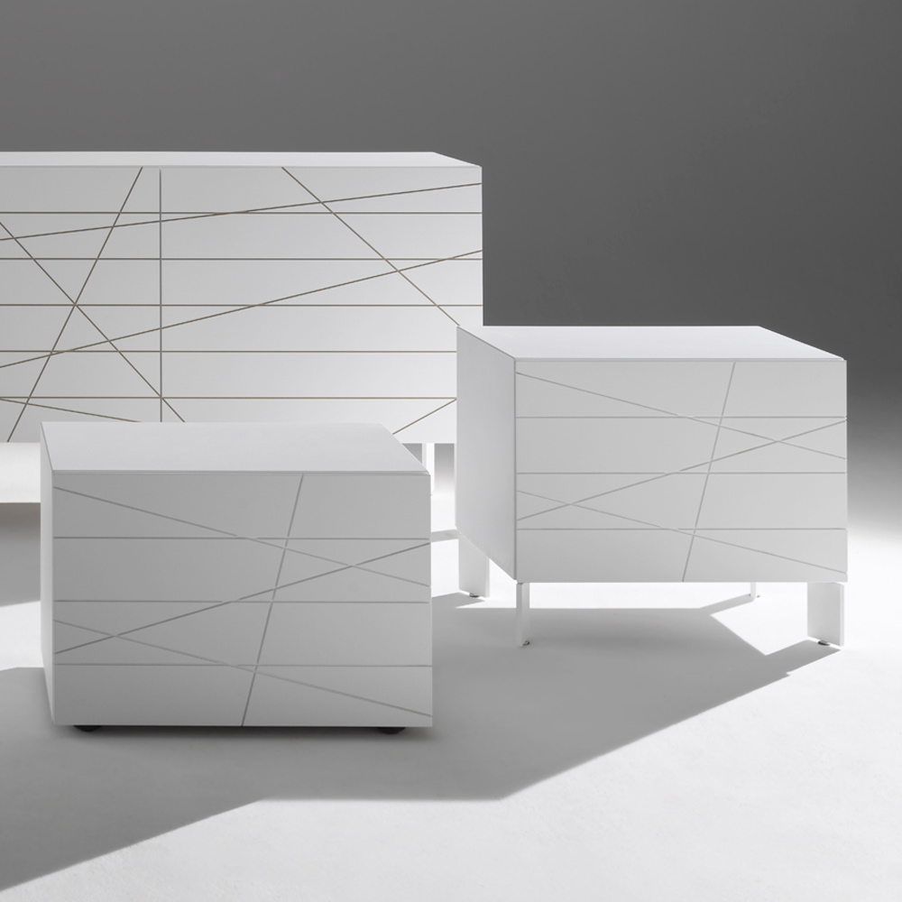 Perfect as a designer bedside table , it fits naturally into modern, minimal and contemporary contexts, enhancing the environment with a sober and sophisticated graphic touch.