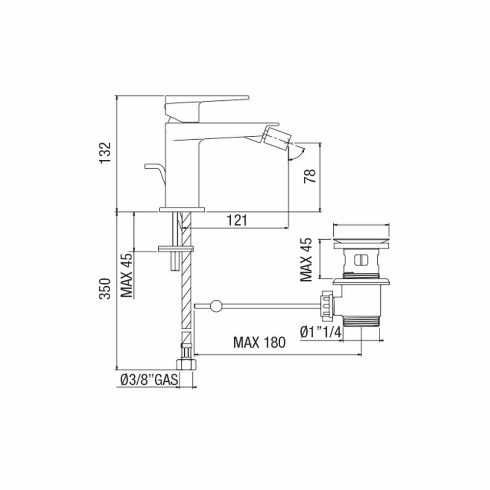 Bidet mixer with 1 ”1/4 waste in chrome-plated brass complete with open Kerox Ø 25 mm cartridge. Entirely made in Italy , this complement for the furnishing of your bathroom helps to make the atmosphere elegant and modern thanks to the particularity of its design characterized by geometric lines and the wonderful chrome finish that increases even more the aesthetic value and decorative.