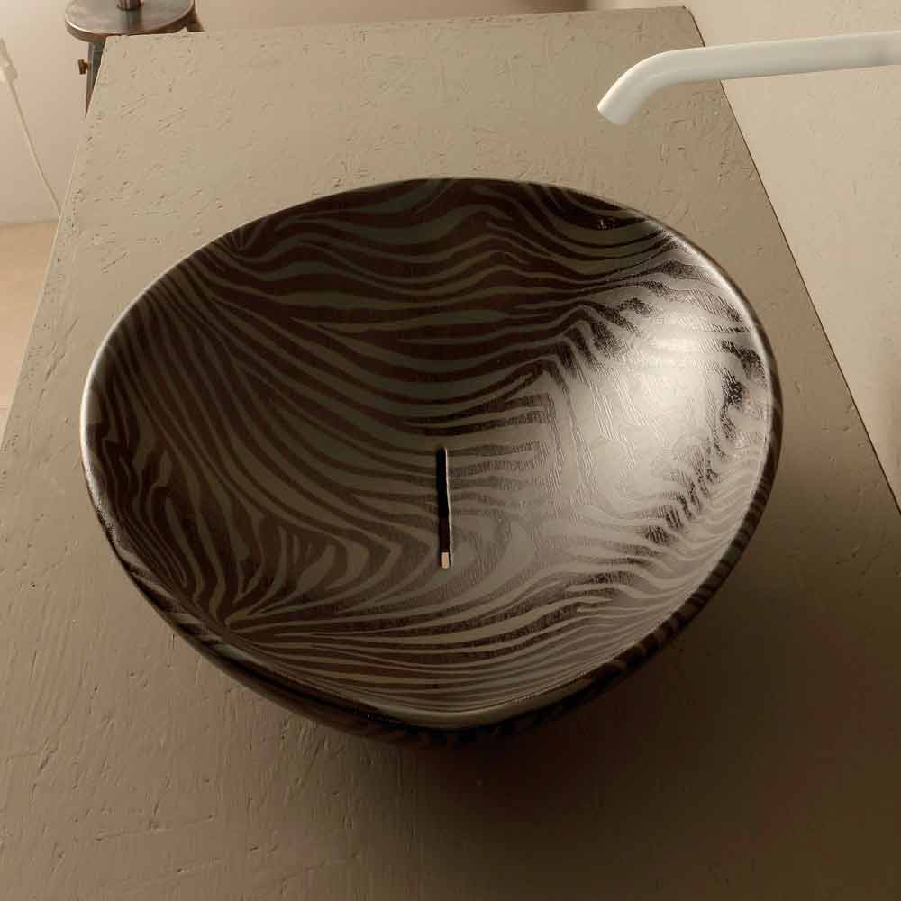 Black ceramic zebra design countertop washbasin made in Italy Animals