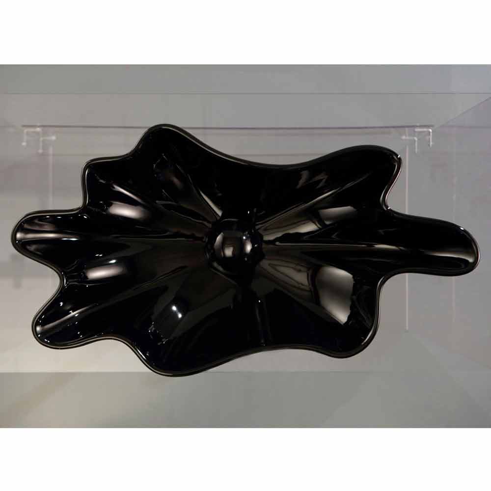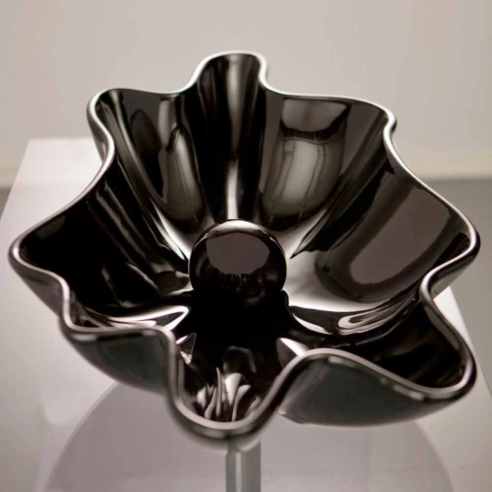 Modern design countertop black ceramic washbasin made in Italy Rayan Washbasin that recalls the sea through its pearl-shaped drainage thus creating the illusion that it is an oyster. From important dimensions, even in height; produces a decisive effect, as a true protagonist of the bathroom.