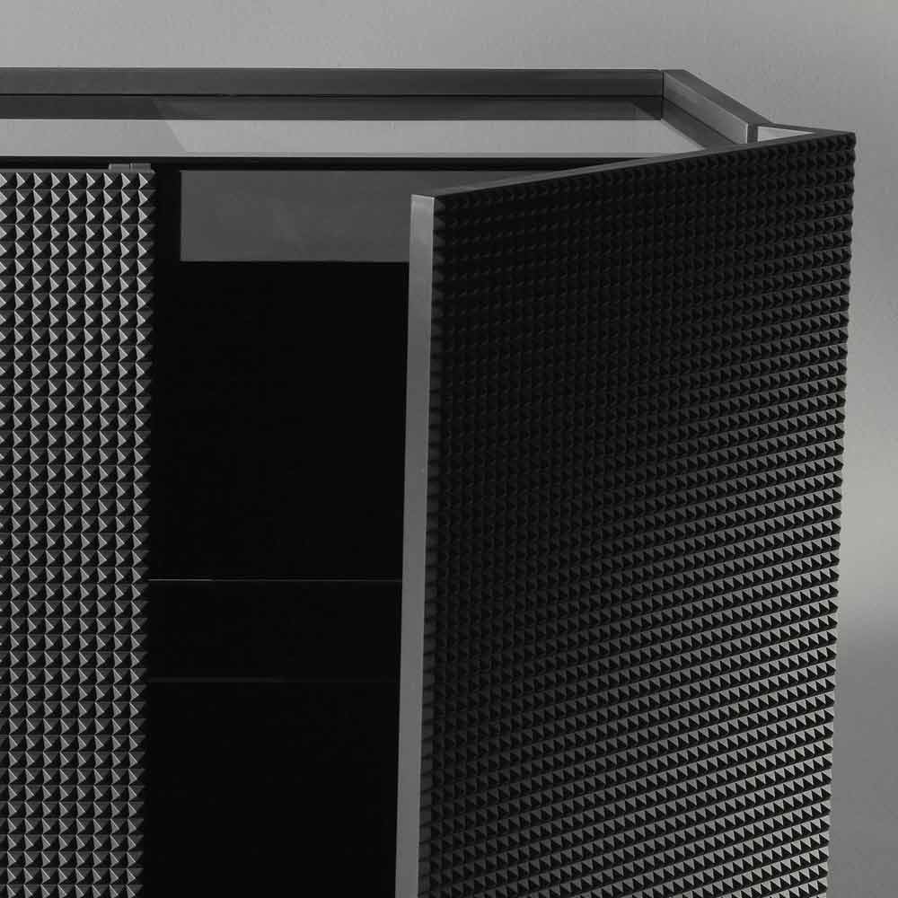 Black cupboard with 2 doors and pull out drawer Flora, made in Italy