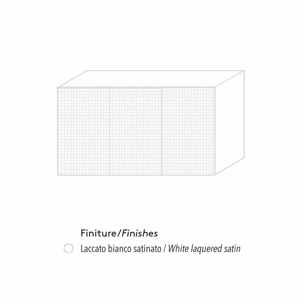 Flora is a modern design cupboard provided with 2 doors, 1 pull-out drawer and a back-painted glass top. It comes with two inner crystal shelves.