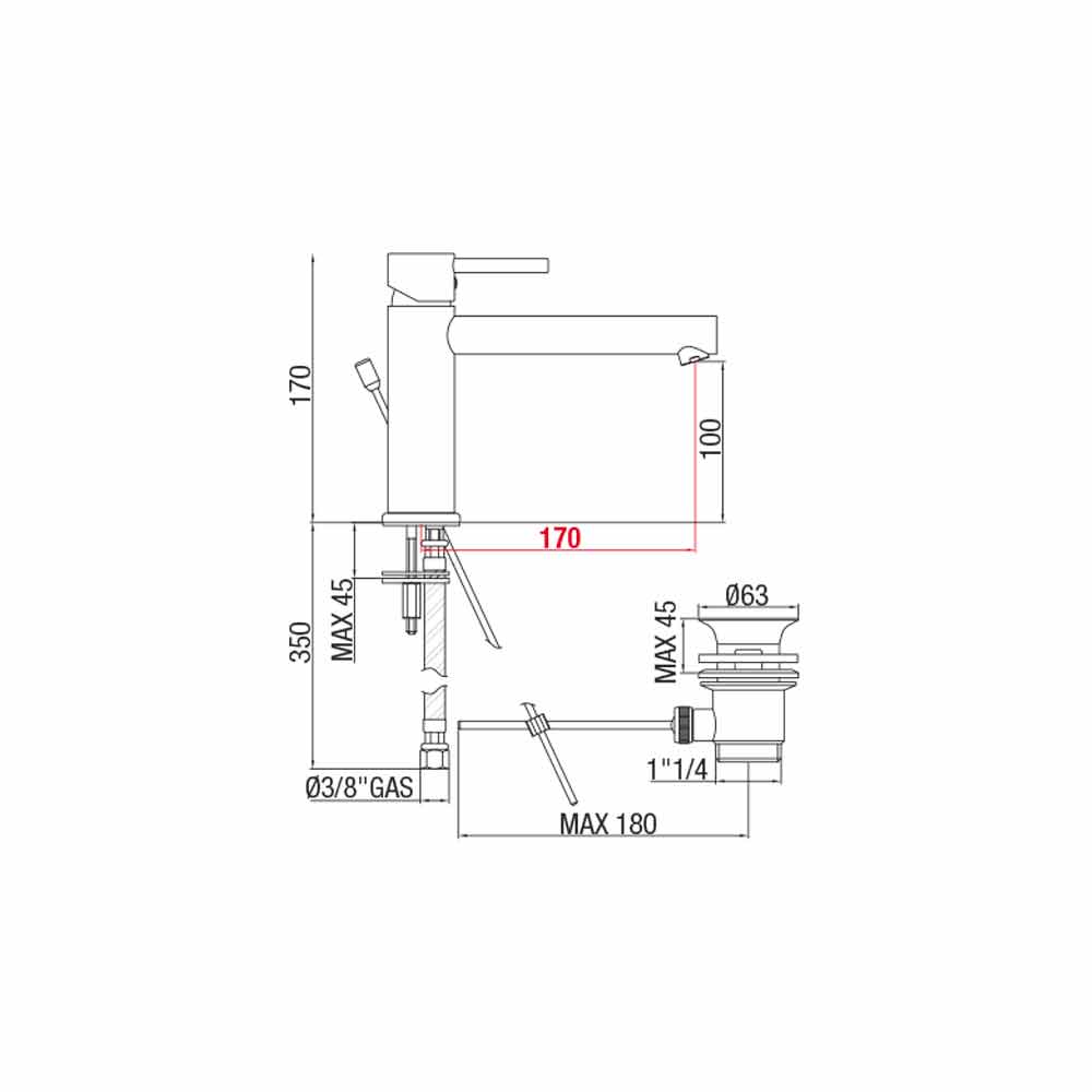 chromed brass with spout 170 mm center distance complete with open Ć 25 mm Kerox cartridge.