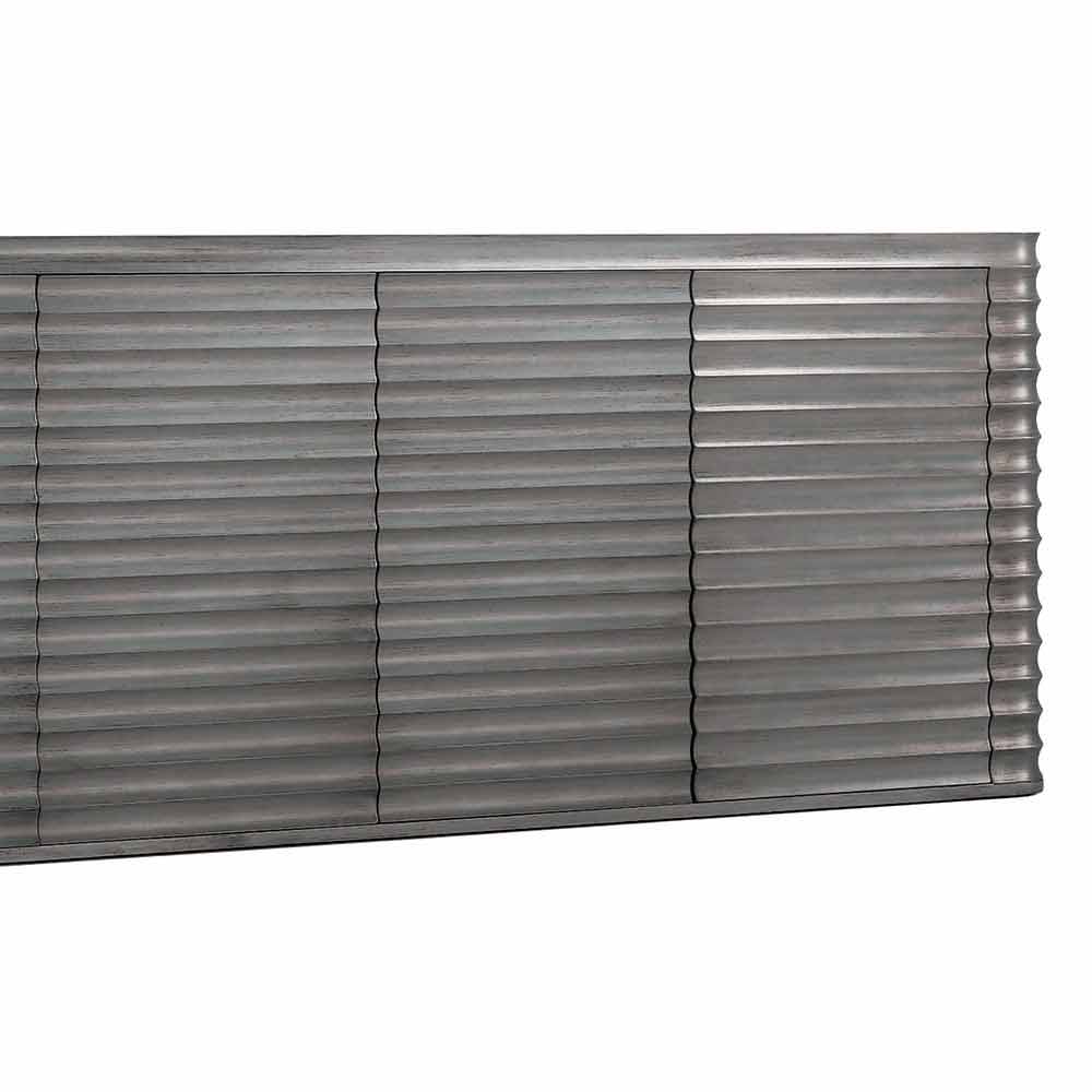 Cabinet with 4 doors in molded wood design, L230xP49 cm, Dana Low cabinet 4 doors with wooden structure machined with numerical control machine. Waved effect. Dana is available in the following finishes: patinated bleached maple or lead. Select the finish you want from the drop-down menu.
