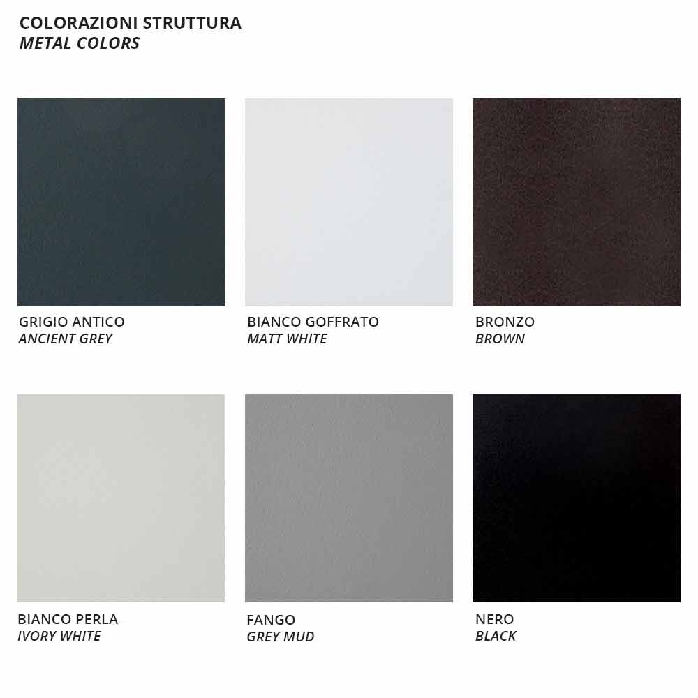 Its structure is made of metal painted with thermosetting powders ideal for the creation of outdoor products while the seat and backrest cushion are made of 100% dyed acrylic fabric. The two materials which are used provides the product with excellent solidity and durability over time as well as resistance to all weather conditions, stains, mold and UV rays.