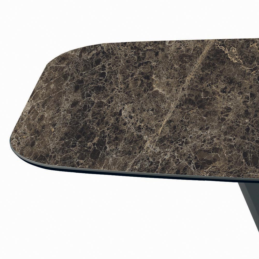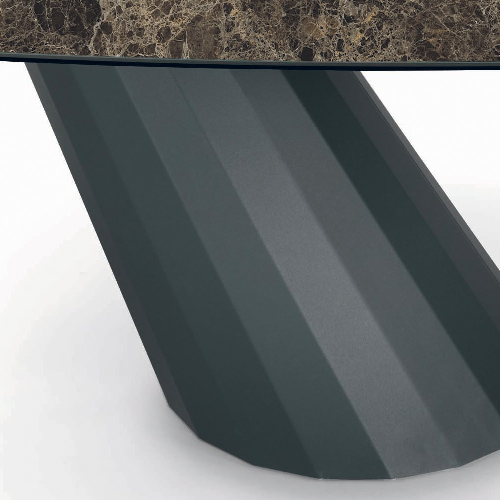 Fixed living room table with ceramic barrel top, 45° bevelled edge , graphite lacquered steel base and adjustable feet Made in Italy. This product releases great elegance and becomes the protagonist of any environment . The refinement of the shape of the base combined with the finish of the top you choose creates a unique table, with a great visual impact that furnishes everyday and contract environments with taste and refinement . The choice of top quality materials and the attention in the creation of every single detail create a product of excellent quality Made in Italy.