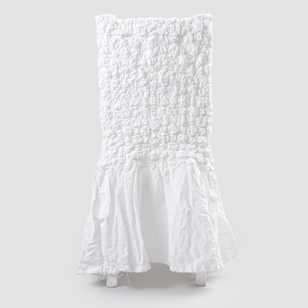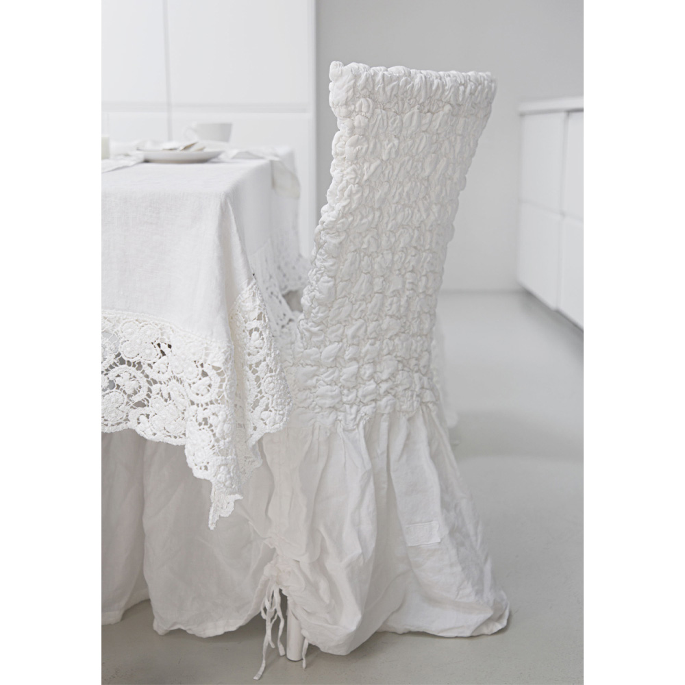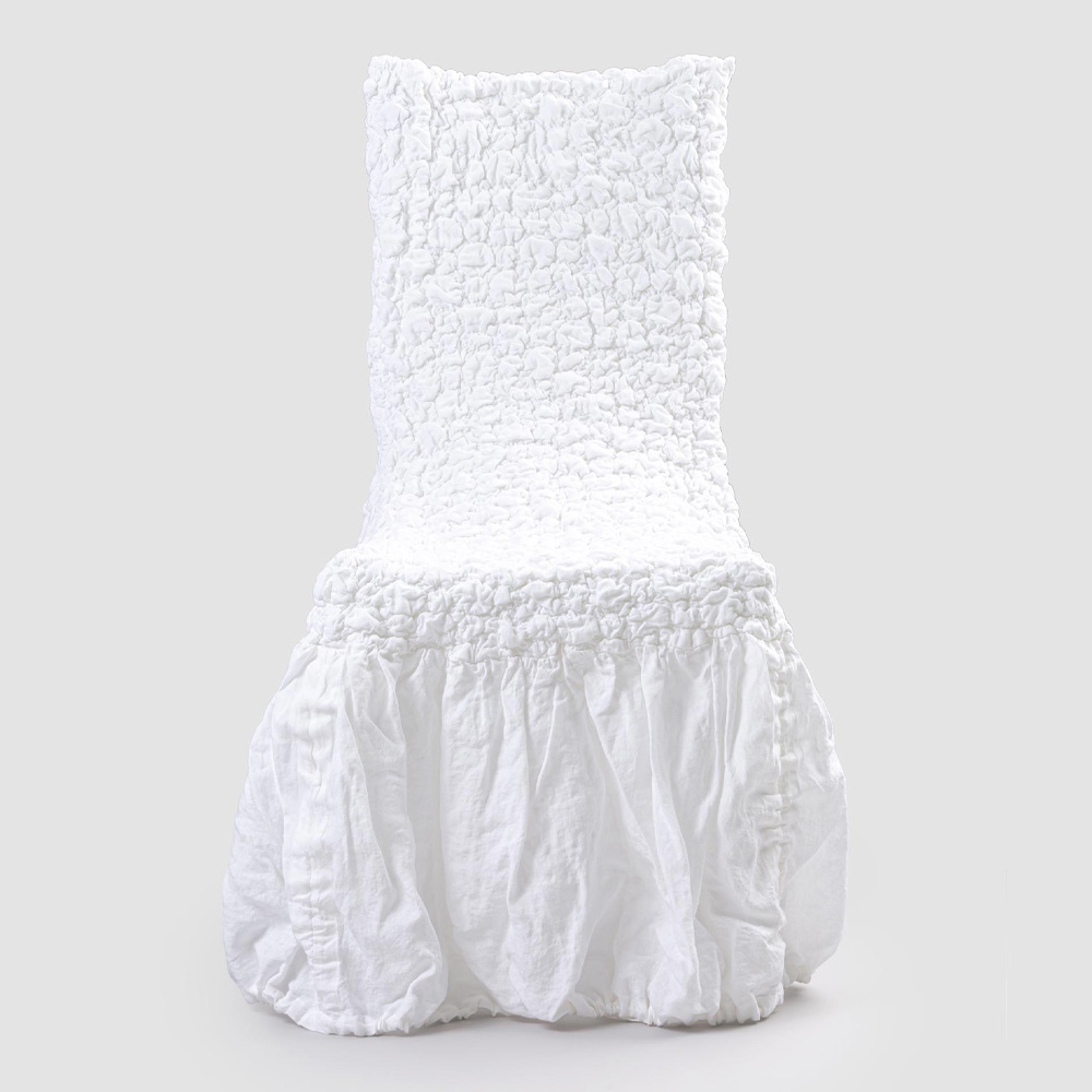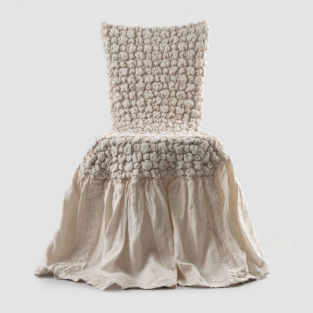 Chair cover in embossed light linen with white, black, old butter or mineral old made in Italy flounce.