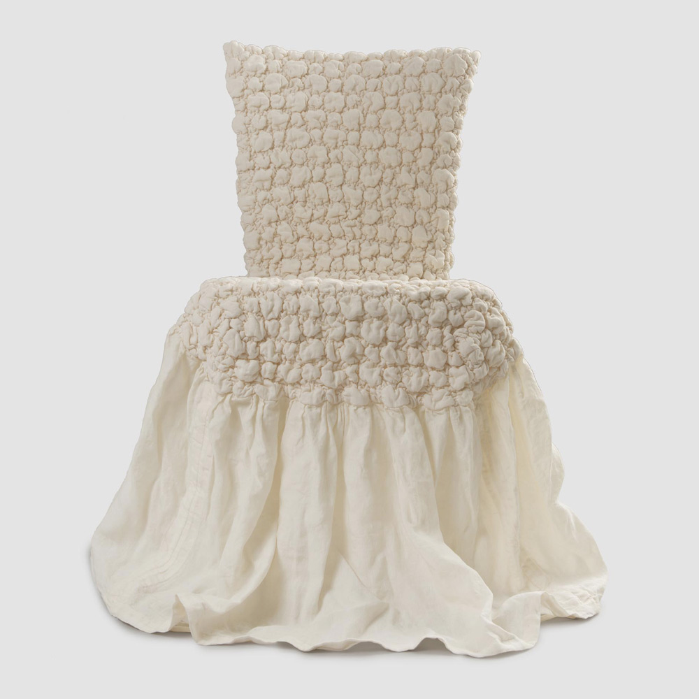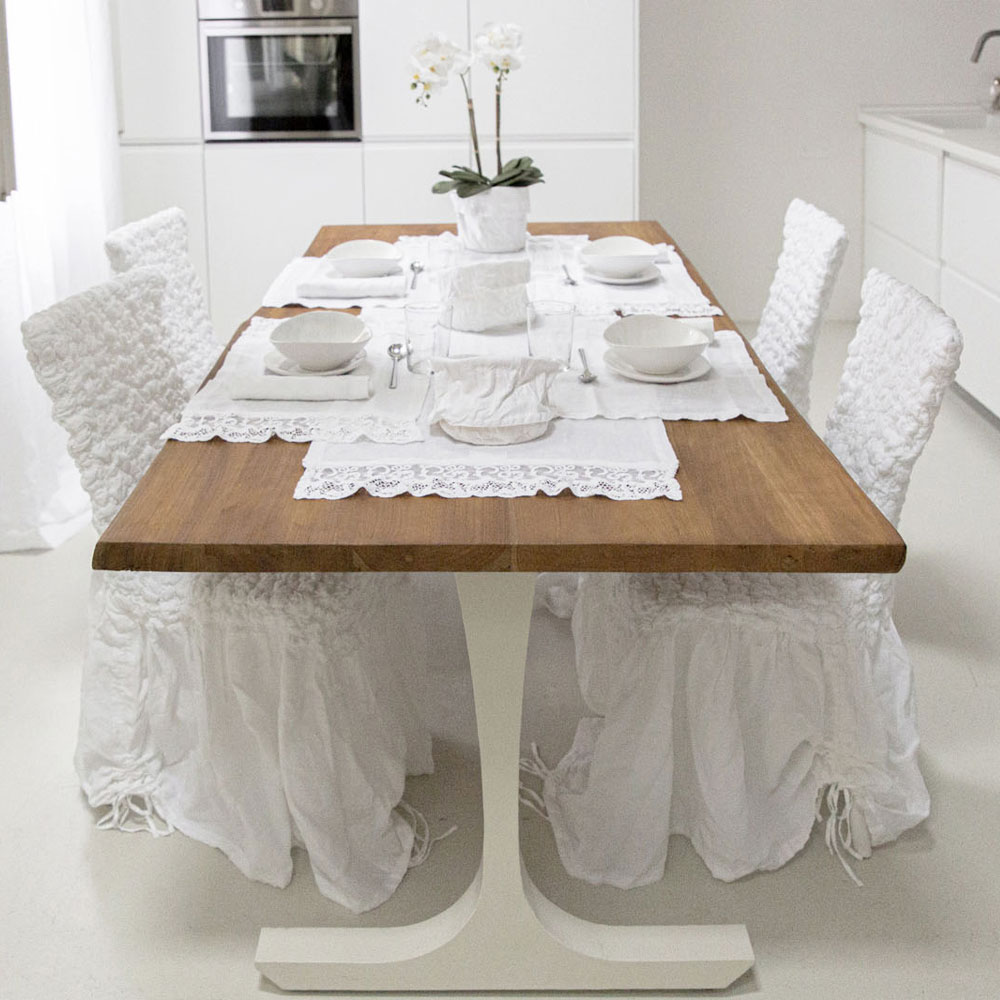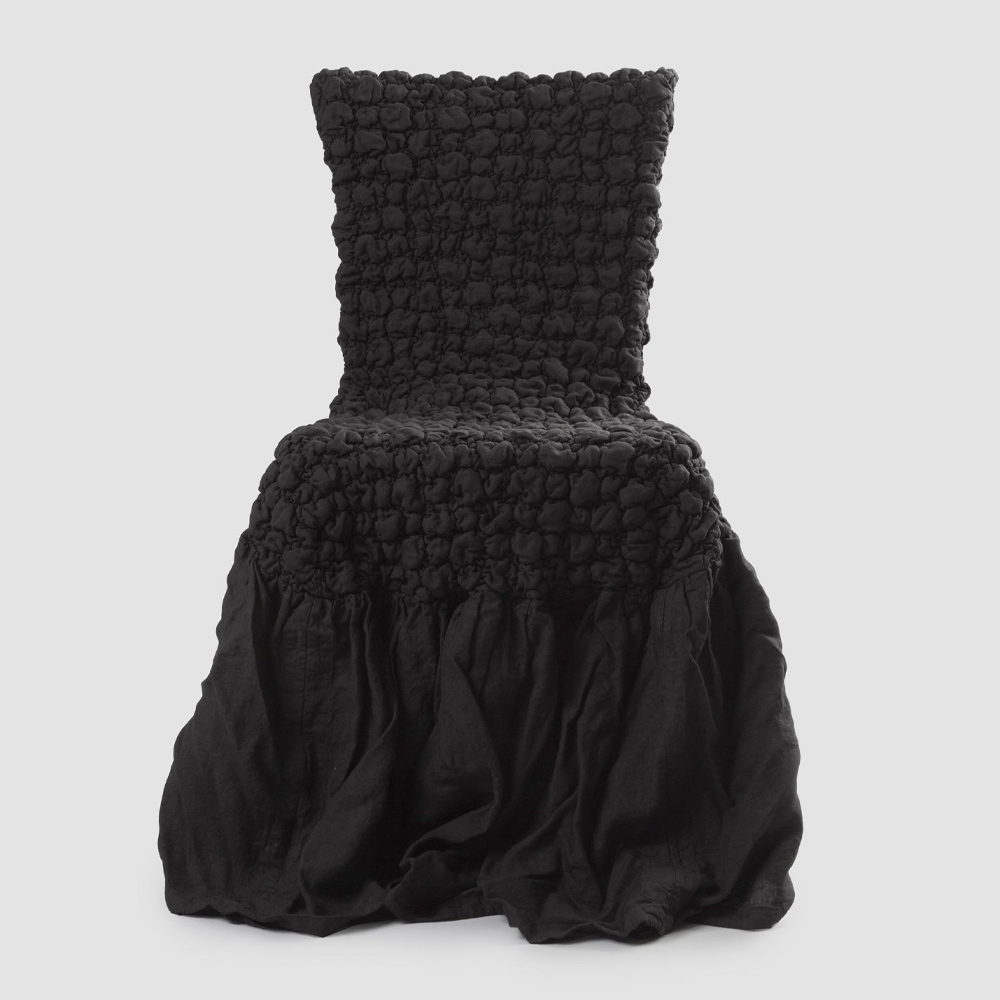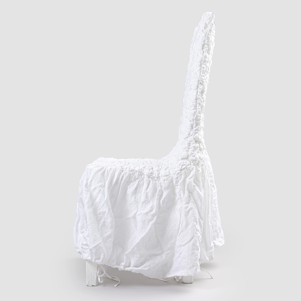 Chair cover in embossed light linen with white, black, old butter or mineral old made in Italy flounce.