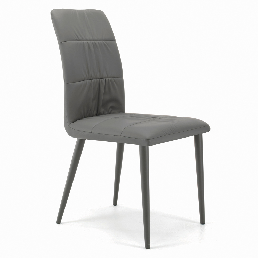 Living room chair made with steel seat and backrest completely covered in eco-leather and lacquered legs. This element is the perfect idea for all those who want to give their room a particular and modern look without giving up functionality and soft, comfortable seats. The materials used guarantee quality and durability, making the chair suitable for any situation and occasion.