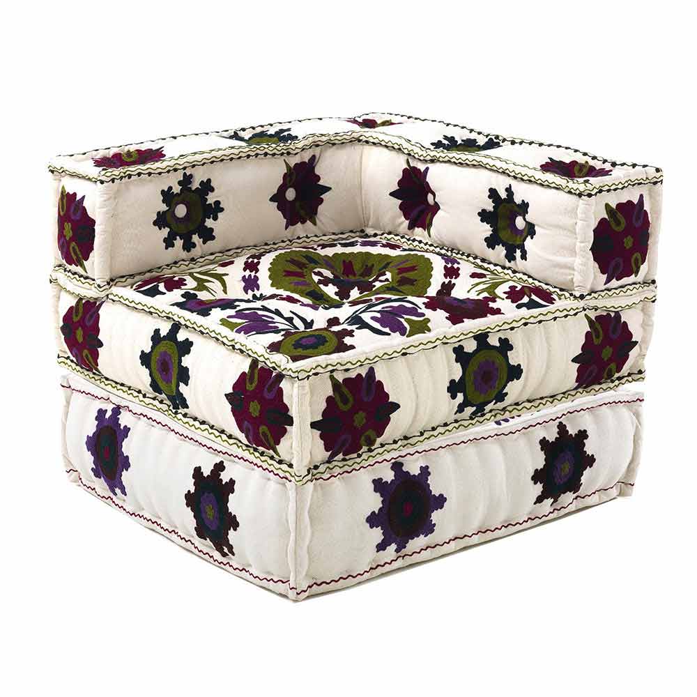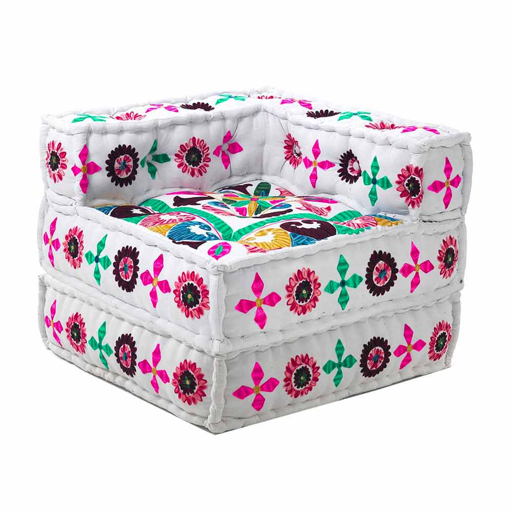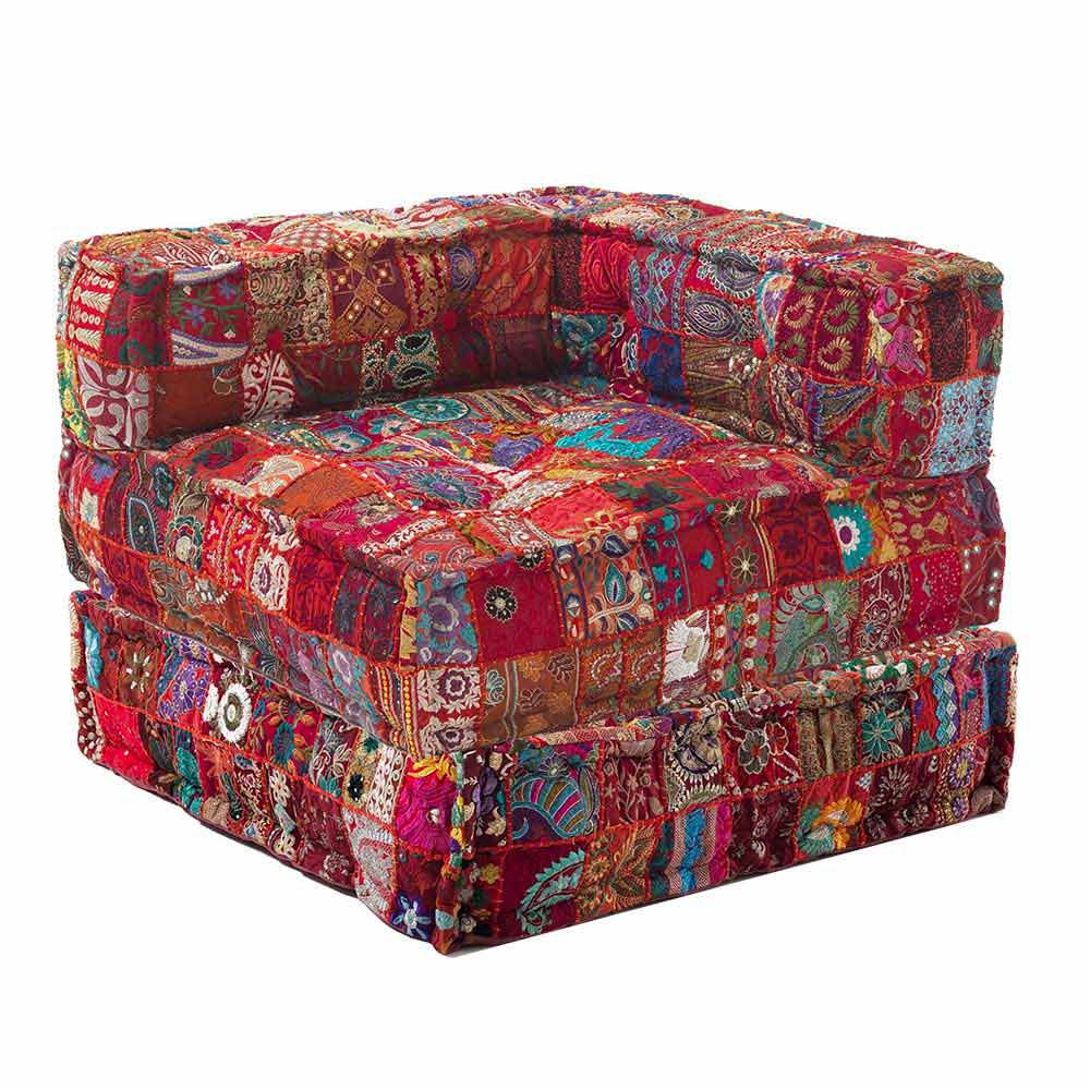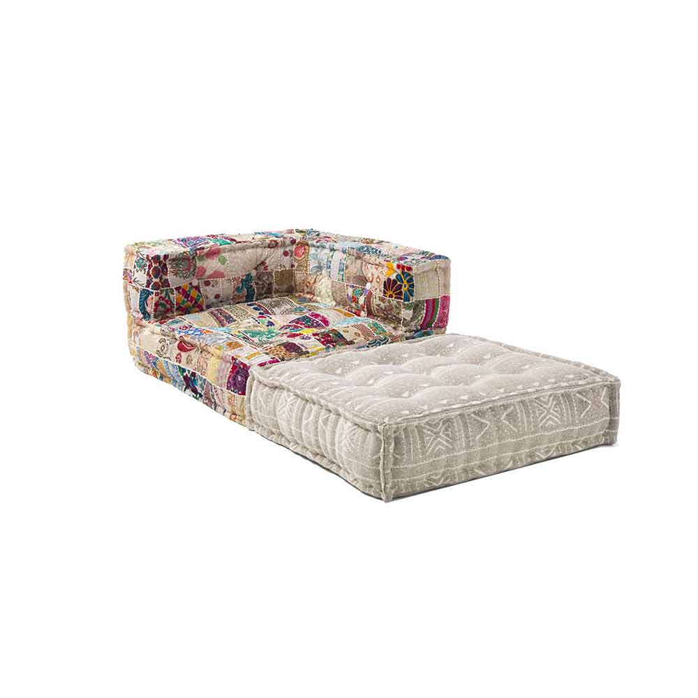 Ethnic design chaise longue armchair in colored patchwork cotton.