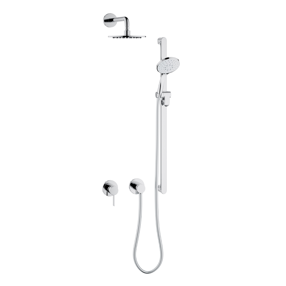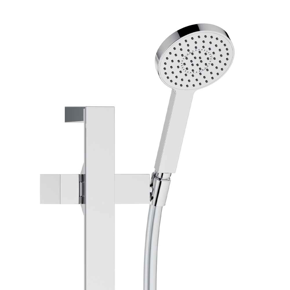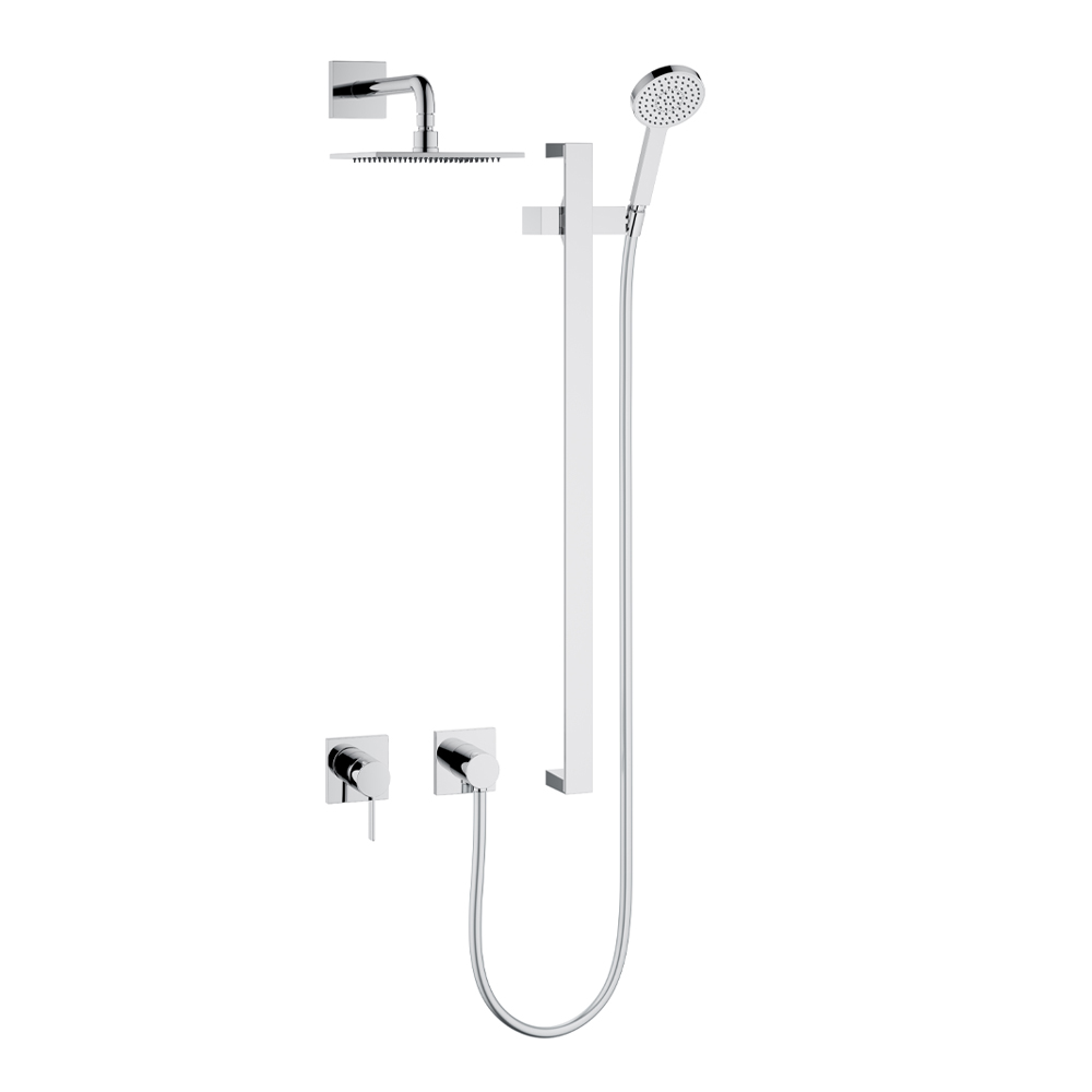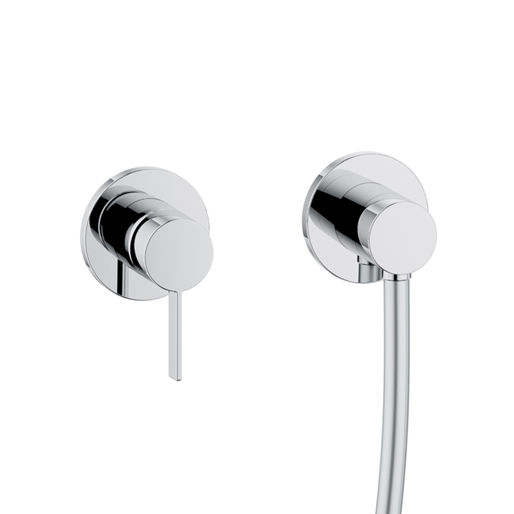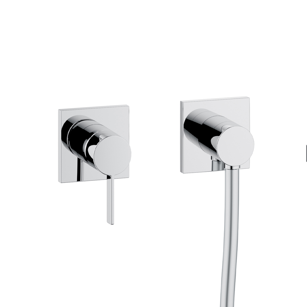 This internal shower unit with two-way installation with single-lever mixer, hose connection, hand shower support and shower head has a simple and minimal design with a choice of round or square rosette and is entirely made of chromed brass . The result is a small module characterized by an intelligent concentrate of innovative technology in a radical and minimalist design: mixer and hose connection are connected in a unique way for minimum installation effort and maximum functional comfort.