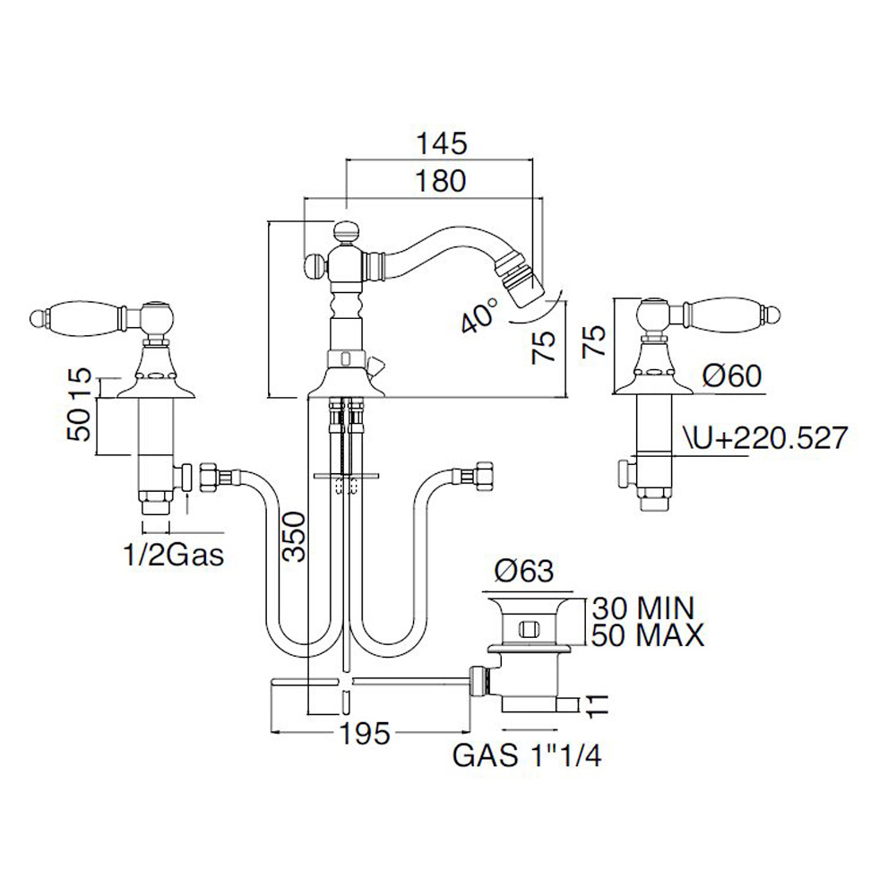 Technical features:- Minimum pressure for good operation: 0.5 bar.