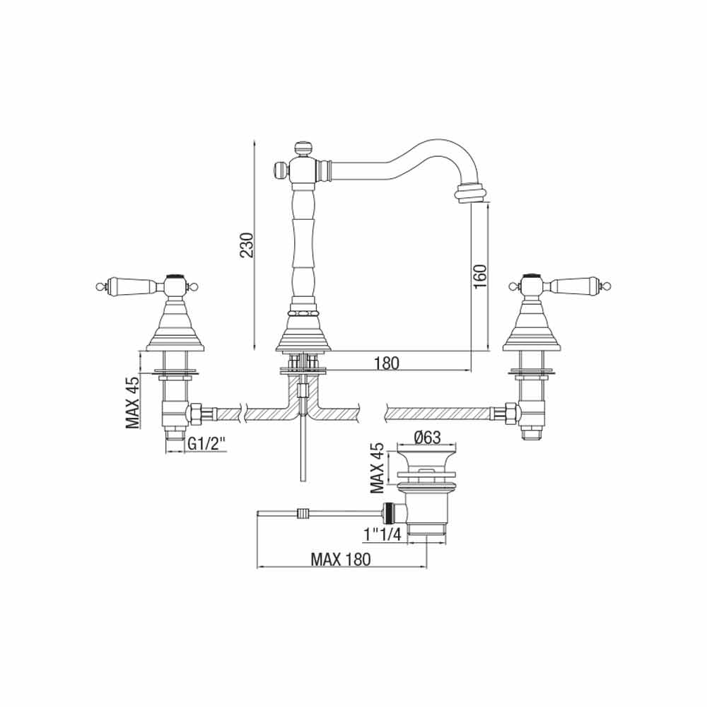 brass with 1 '' 1/4 drain complete with right and left screw. Its structure also includes the