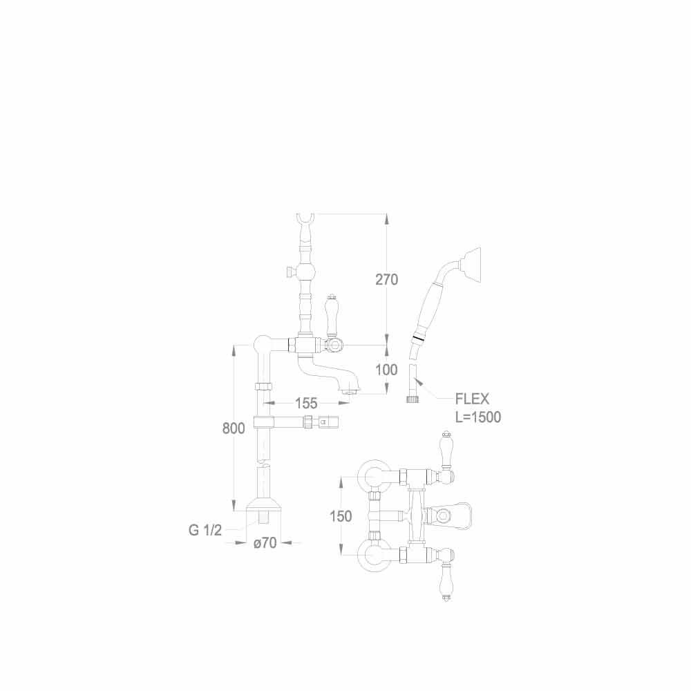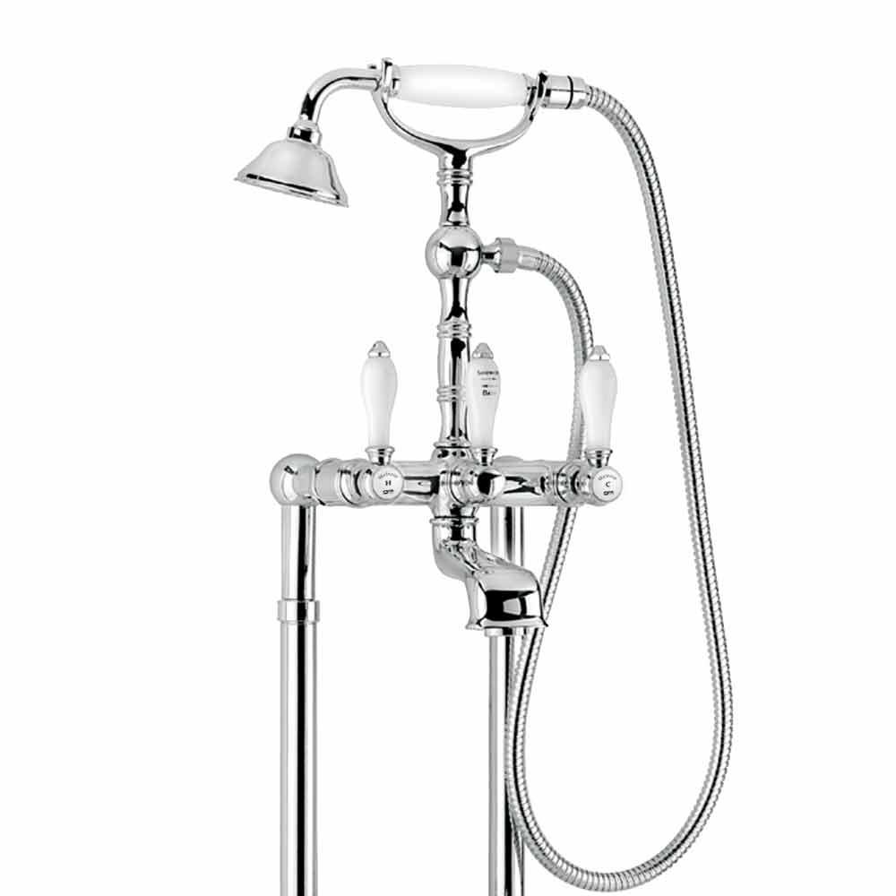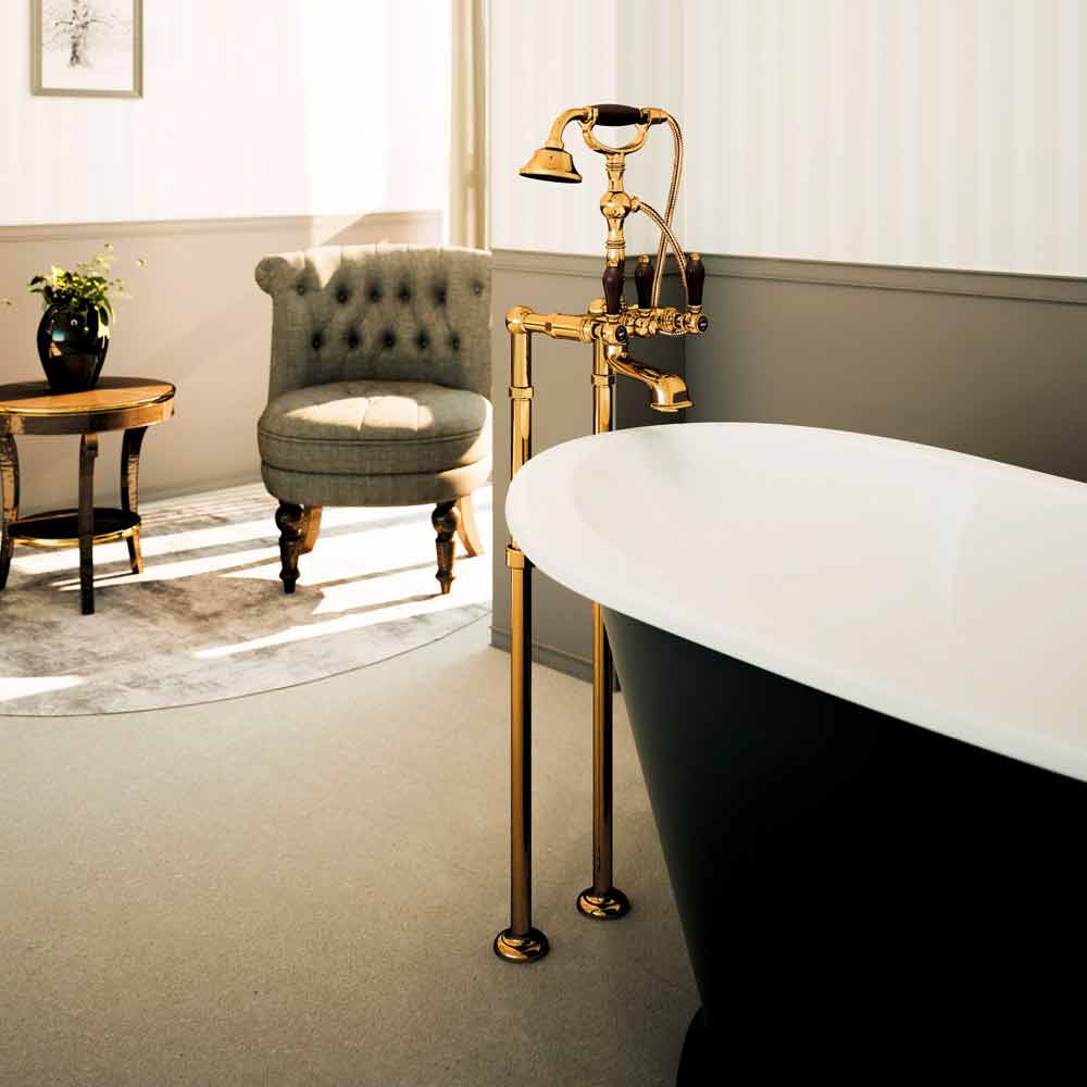 External bath mixer on countertop columns with diverter and duplex hand shower Made in Italy.