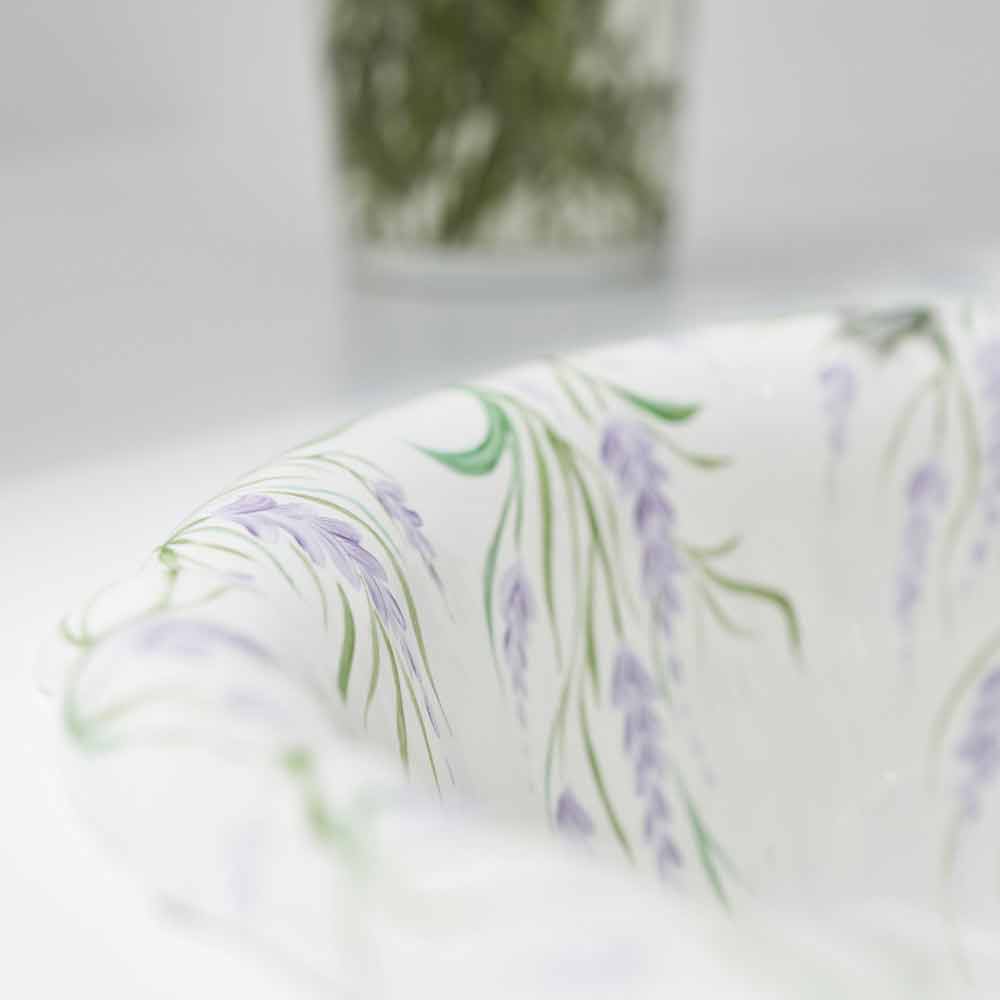Built-in bathroom sink made in Italy in thin white porcelain with internal decorations of small Lavender sticks handmade with brush tecnique.