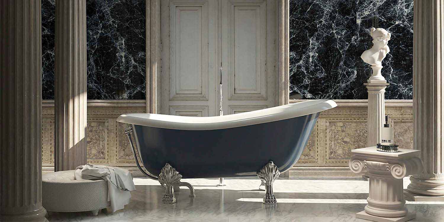 Classic design freestanding bathtub in blue resin, Fregona