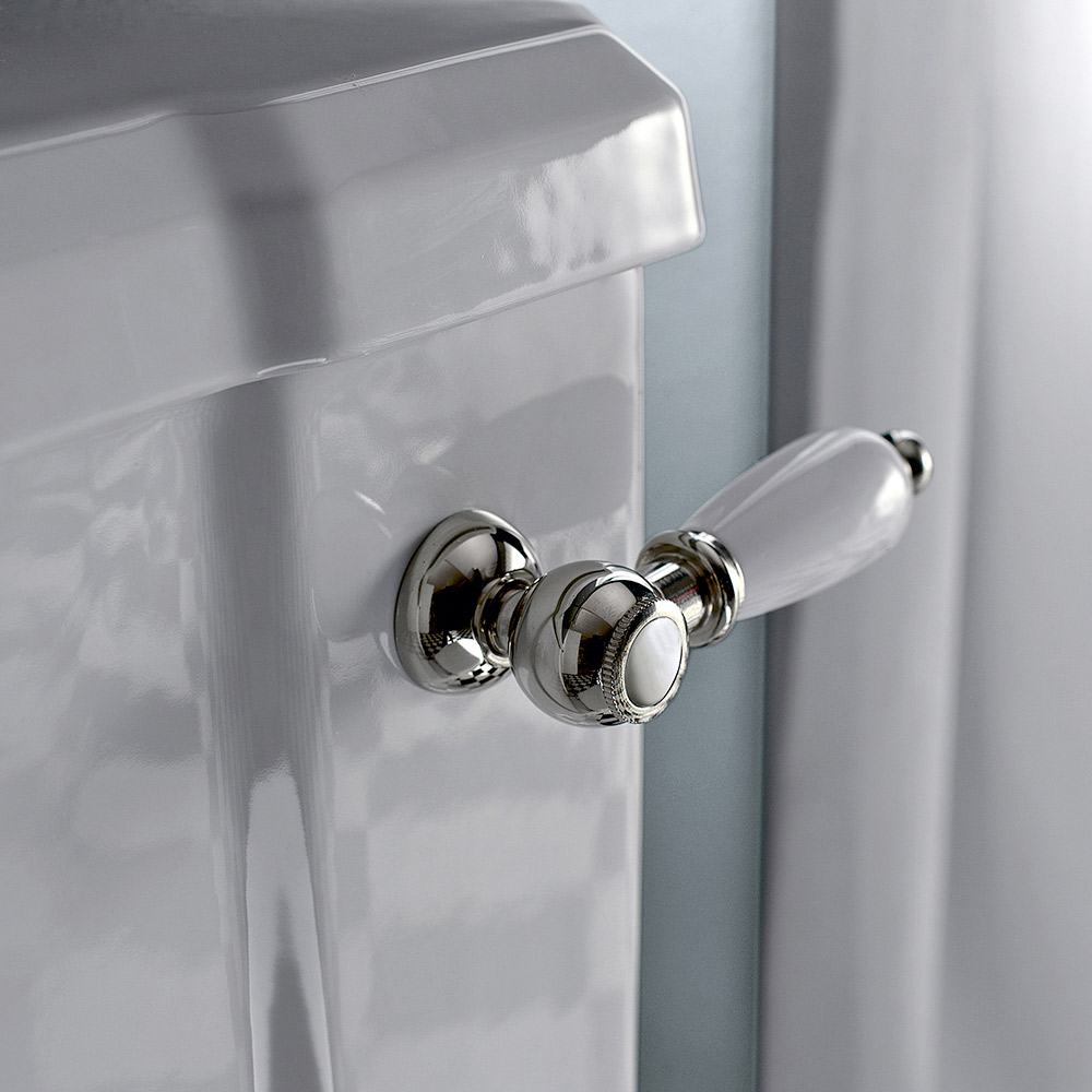 Marwa is a stately monobloc vase with dripping rim and floor drain . Modernity and tradition merge with the use of the white seat with chrome hinges and the monoblocbox with hole for the drain battery with front lever in white ceramic and nickel finish.