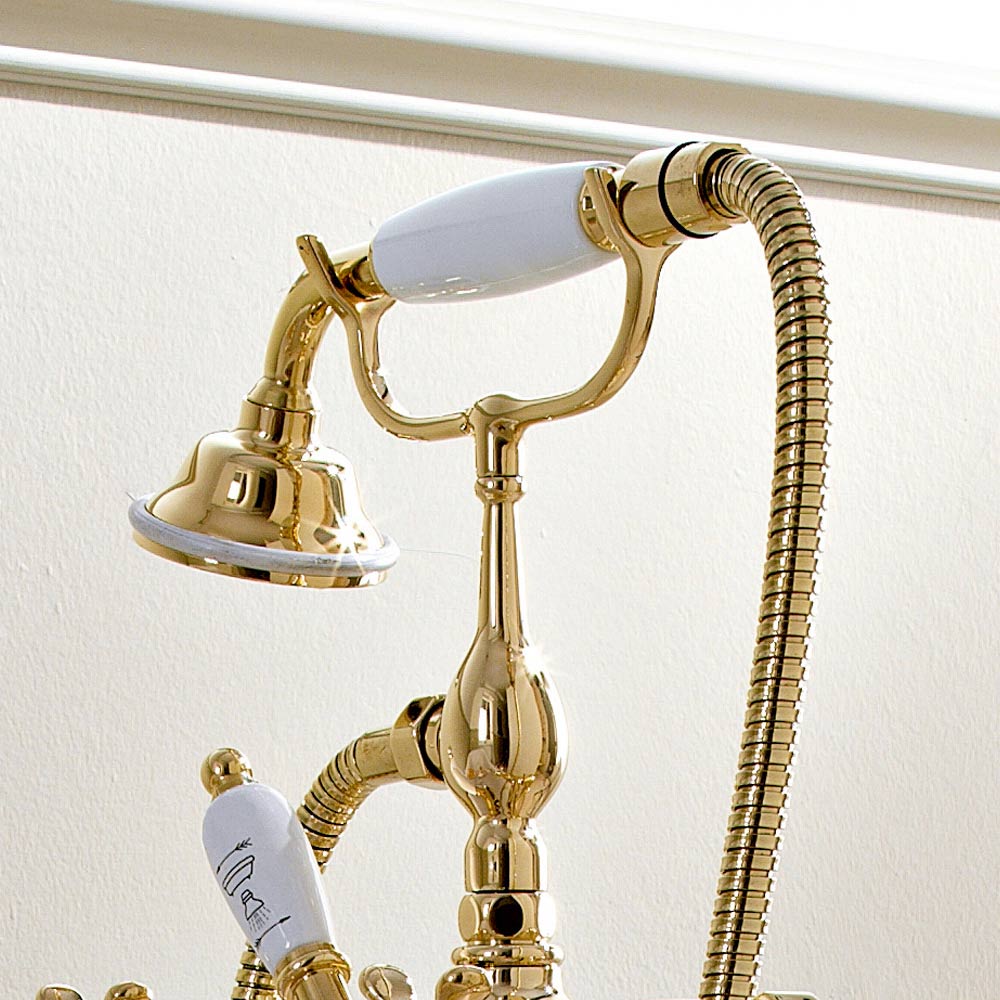 Classic handcrafted brass floor mounted bath mixer with hand shower, high quality made in Italy.