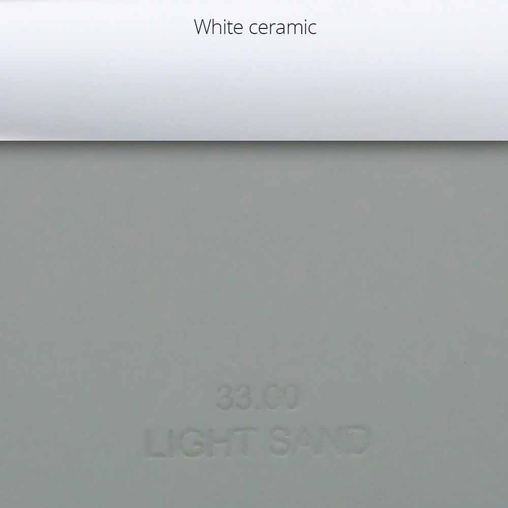 Light Sand: opaque warm light gray finish with white ceramic inserts on the handles;