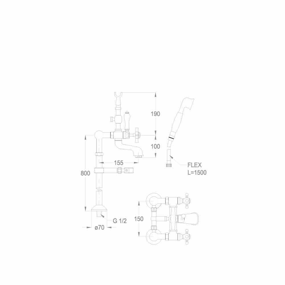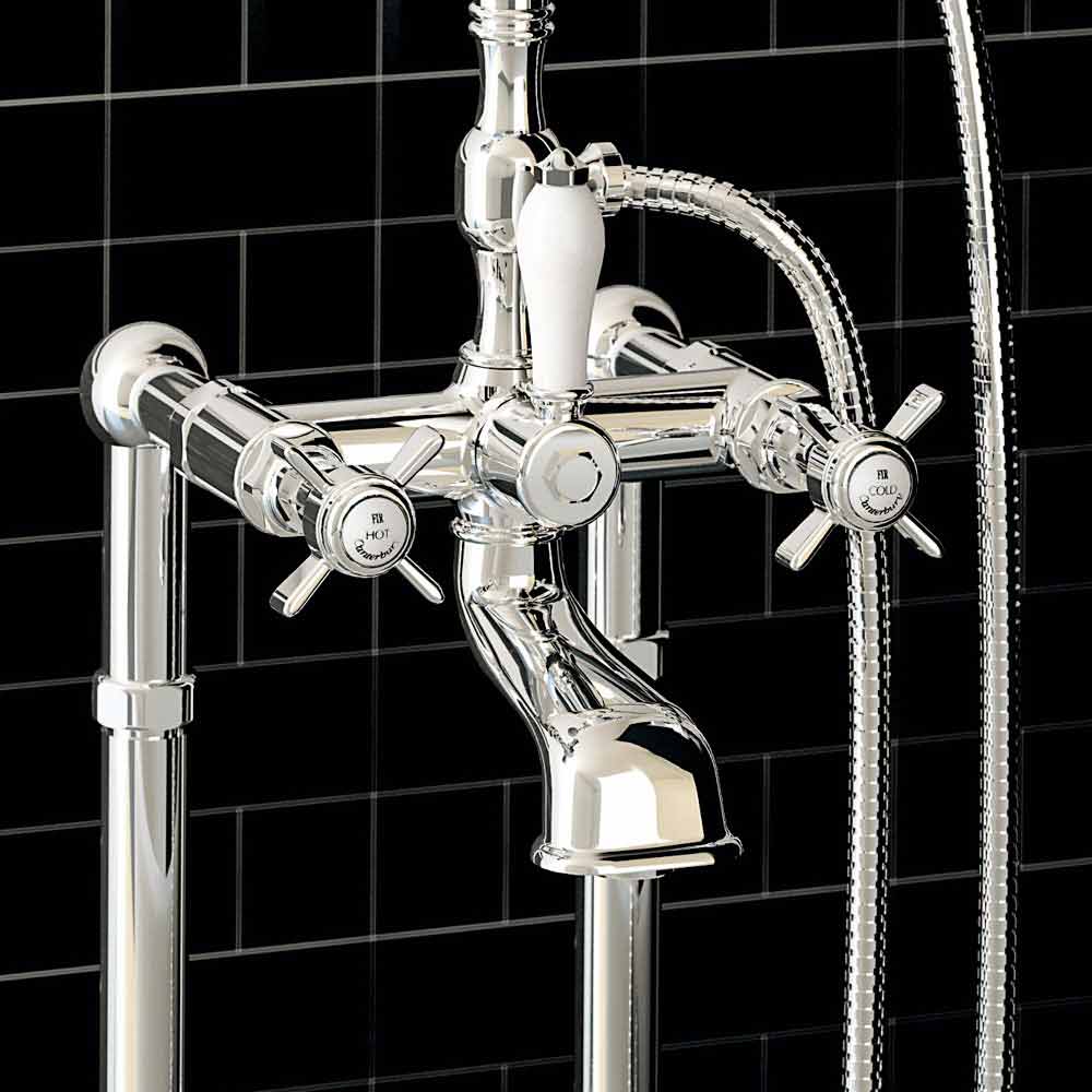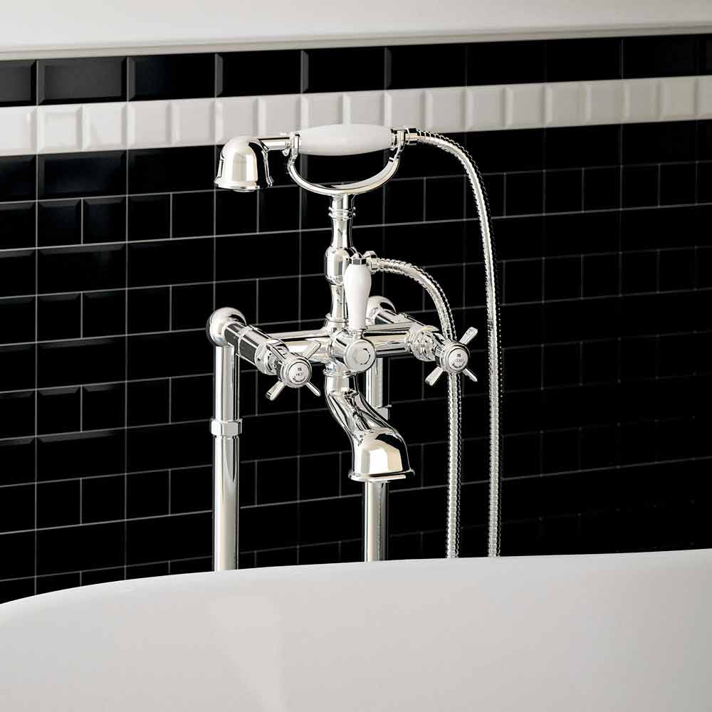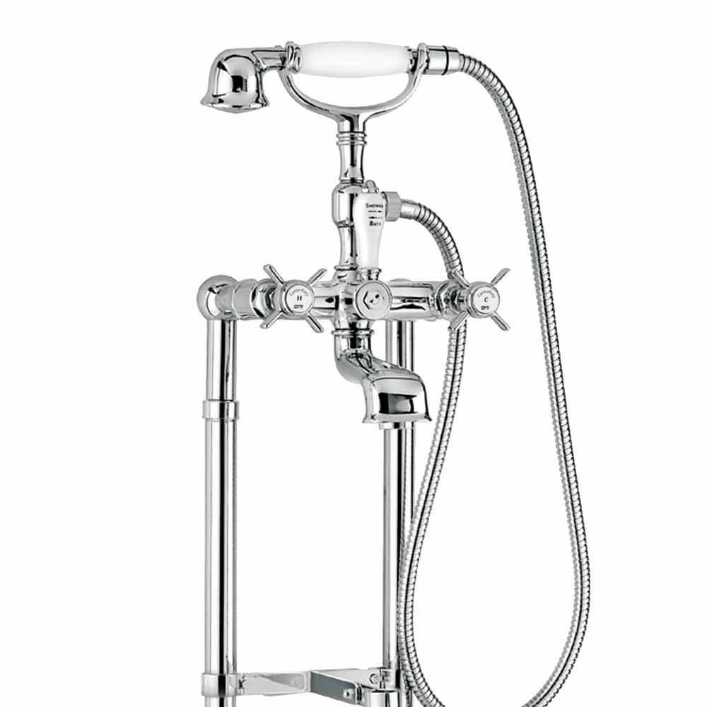 External bath tap on floor columns with diverter and duplex shower Made in Italy.