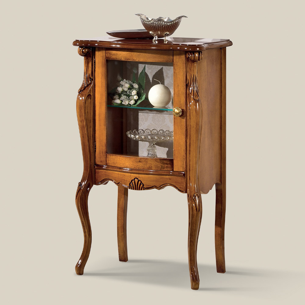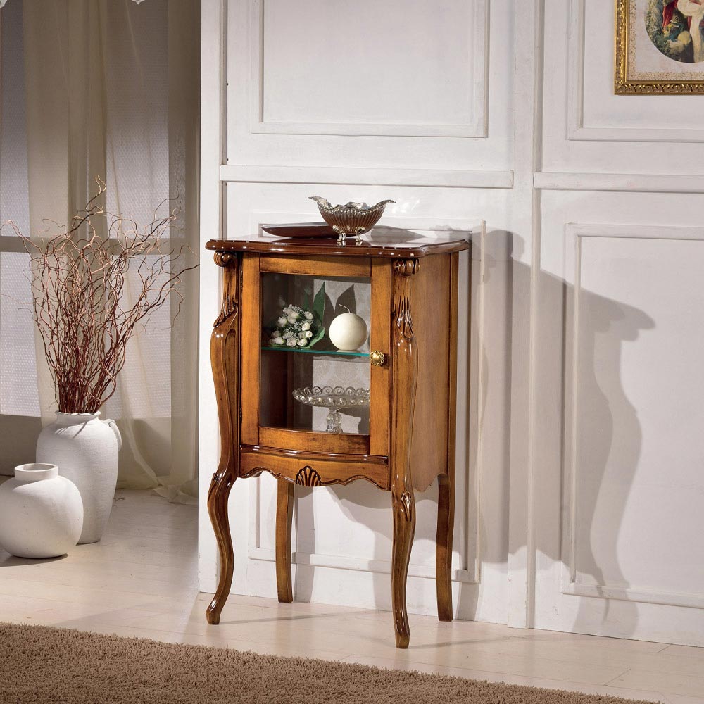 Classic style living room furniture made of wood and available in the version with glass or wooden door. Perfect for decorating your living room, you can choose between Bassano walnut or white wood finish. A unique and refined complement, completely made in Italy by skilled master craftsmen , masters of art who finish each complement with wisdom and taste for elegance. The production is carried out using fine materials , and performing the workbyhand with the utmost care and professionalism that distinguishes Made in Italy products.