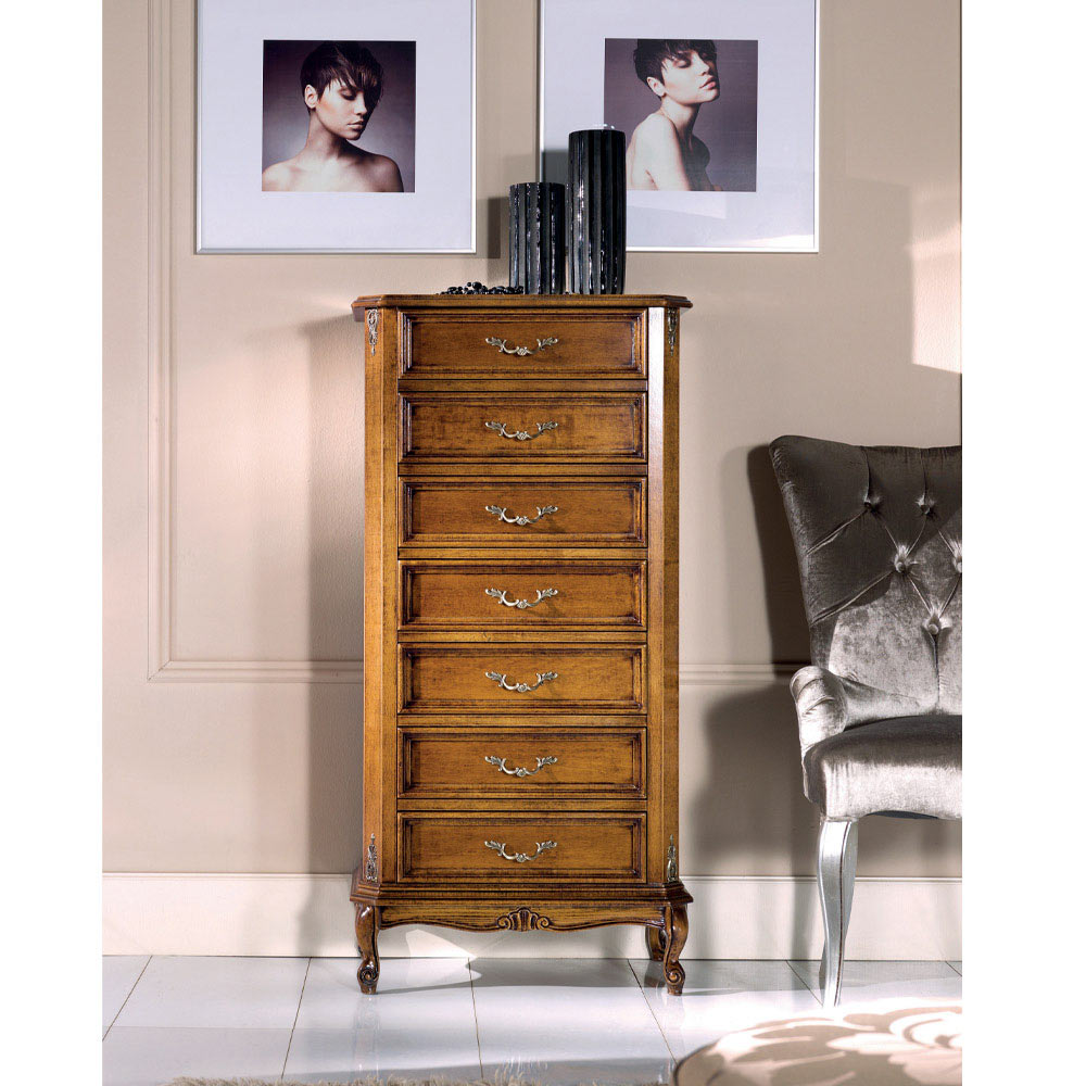 Classic style chest of 7 or 5 drawers in wood Made in Italy.