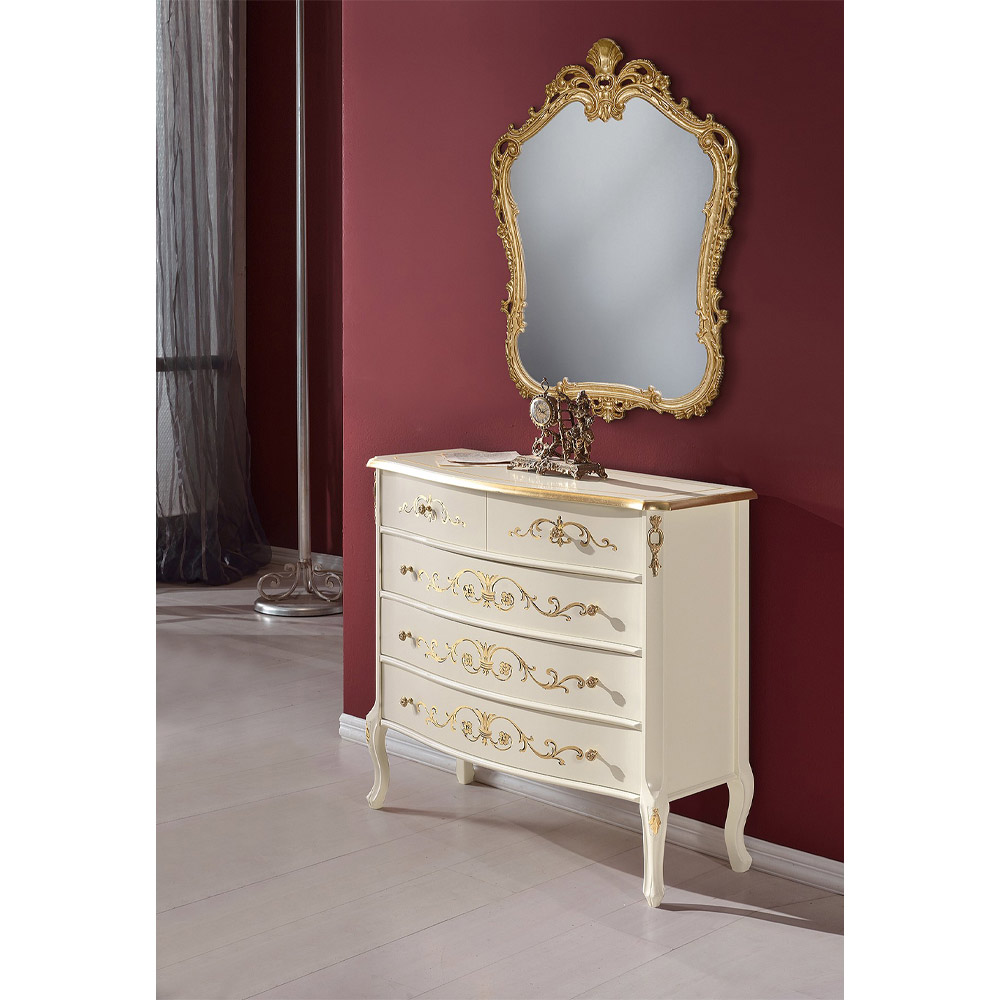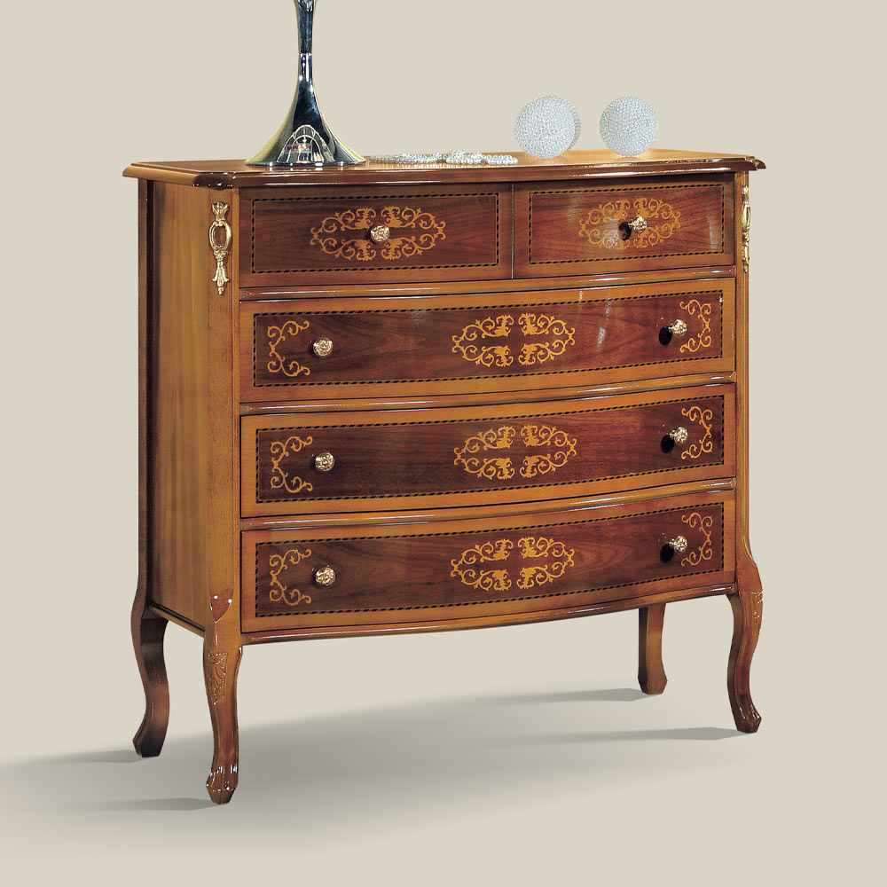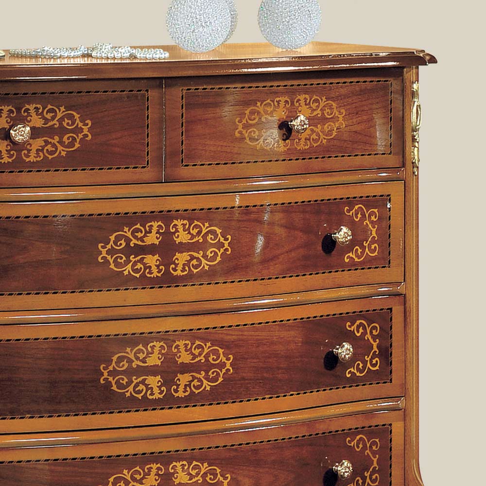 Chest of drawers for bedroom in classic style made of wood complete with 4 practical and functional drawers. Unique and refined, it is completely made in Italy by skilled master craftsmen , finished with wisdom and taste for elegance. The production is carried out using fine materials , and performing the workbyhand with the utmost care and professionalism that distinguishes Made in Italy products.