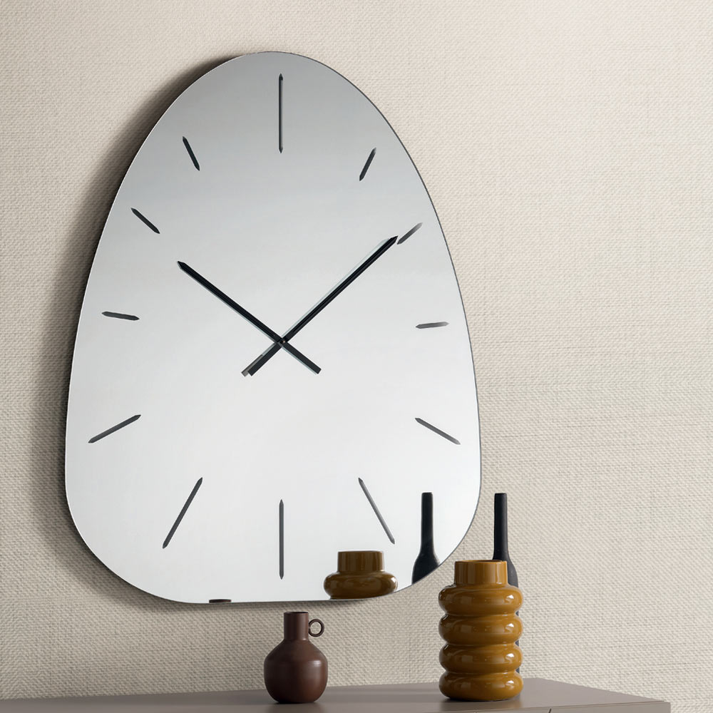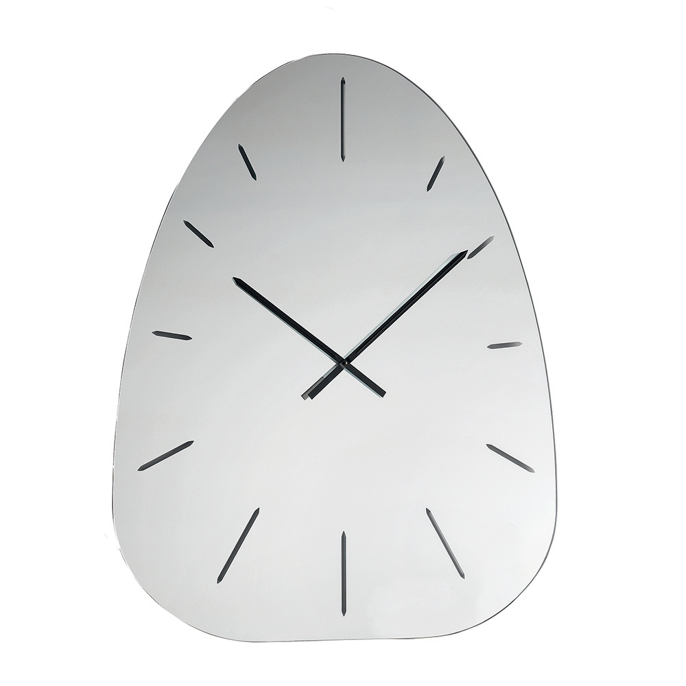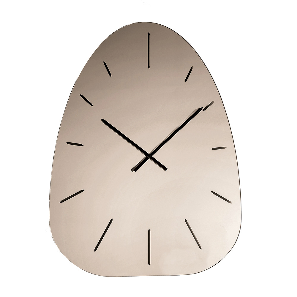 Designer wall clock in mirrored glass with laser engravings