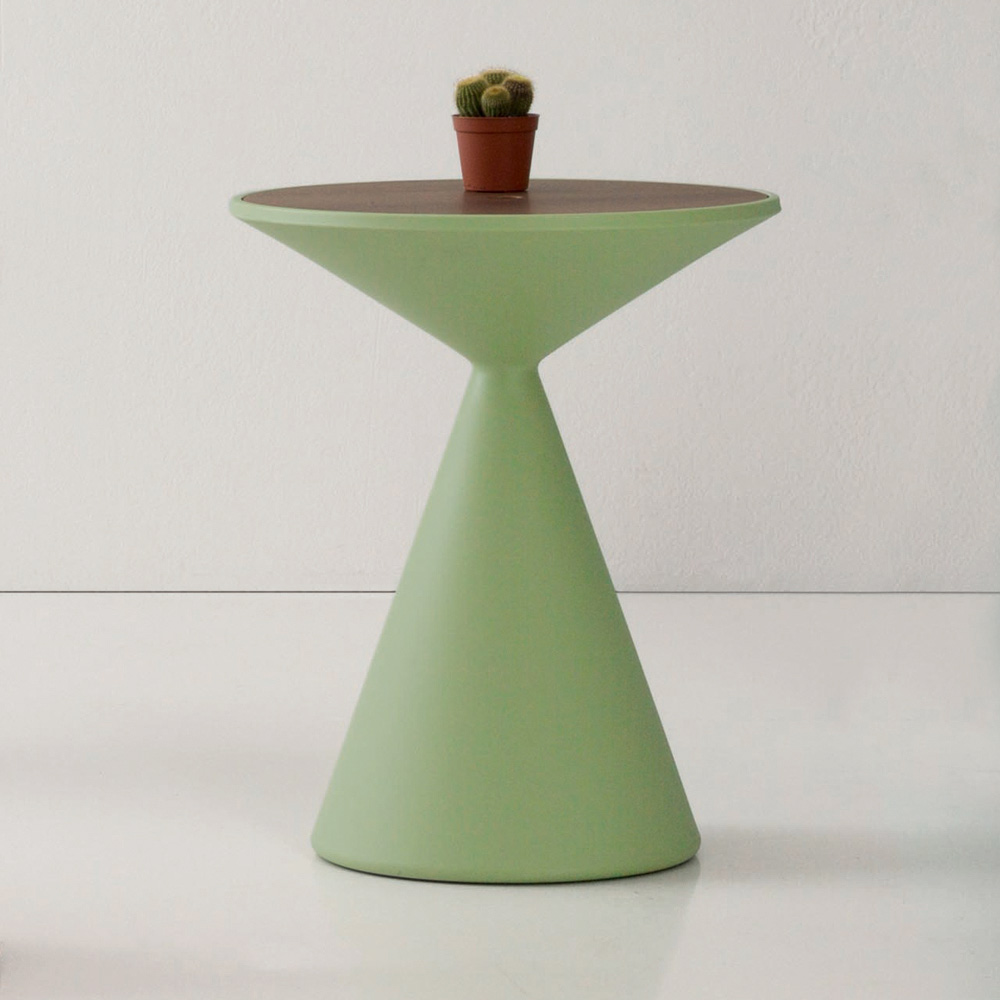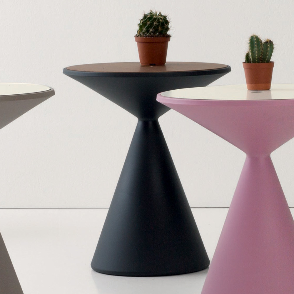 Round coffee table in colored polyethylene with internal container made in Italy.