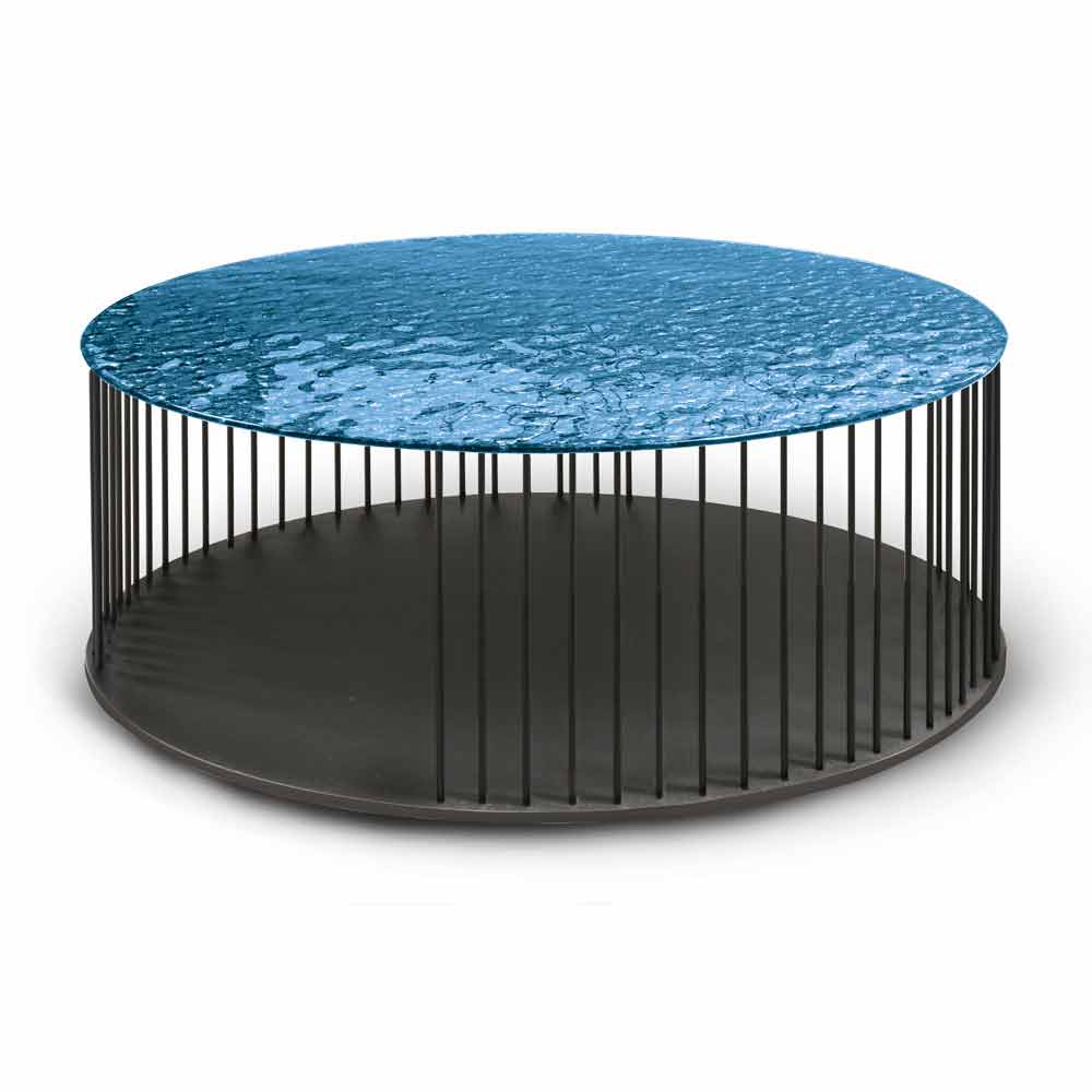 Coffee table with forged glass top and black painted metal base made using a 100% Made in Italy process . The perfect combination of rigorous and decisive lines and shapes and the exclusivity of hand-forged crystal gives life to an innovative and refined furnishing accessory that embodies an extremely essential aesthetic enriched by the use of high quality materials and from the wonderful combination of different textures and finishes for a unique and avant-garde result . Ideal to use alone but also in couple or in trio creating wonderful compositions played on the use of different sizes thanks to the 4 proposed sizes. Whatever the choice, there will always be a perfect furnishing idea to give an exclusive touch to your living area, conquering the center of attention.