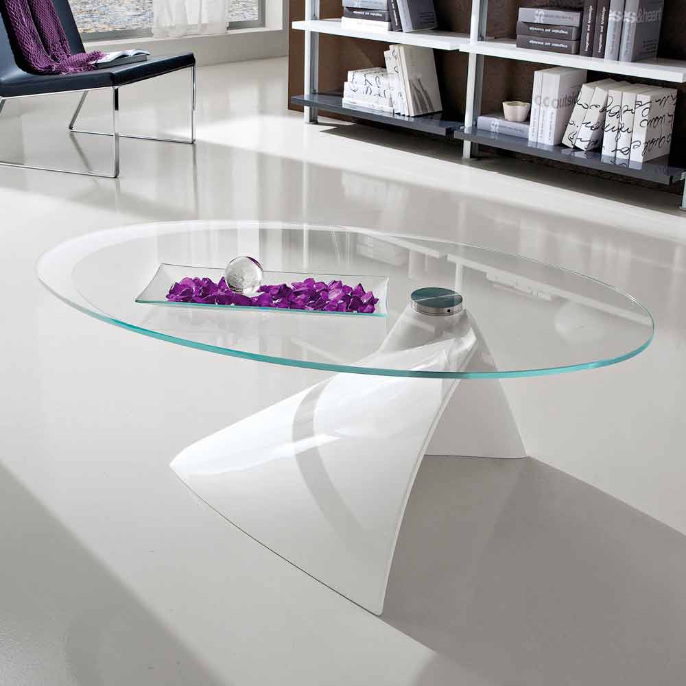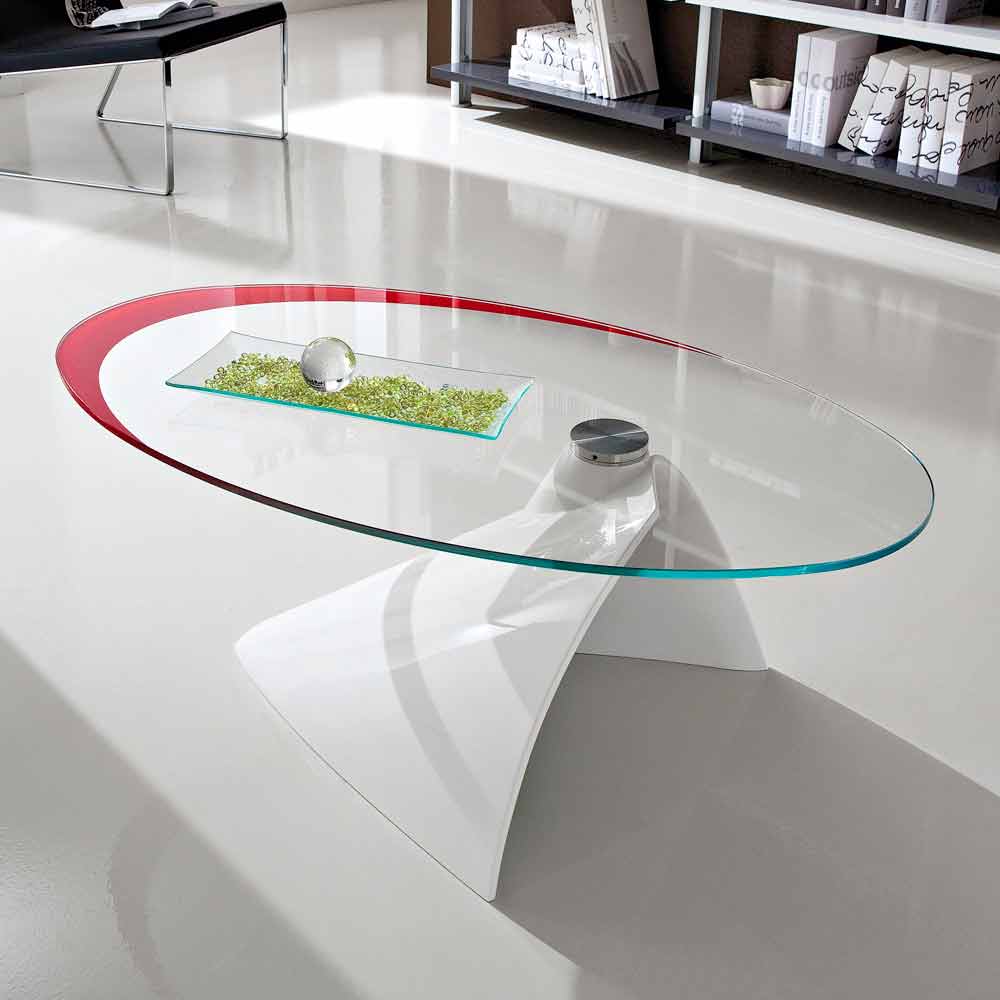 Coffee table made in Italy with base in mineral marble (synthetic marble), a material obtained through the mixture of marble powders and oval top in screen-printed glass (10mm thick) supported by a steel plate welded with UV glues. A furnishing idea with an almost futuristic aesthetic capable of characterizing any domestic living space, bringing with it an extremely captivating touch . The timeless elegance of the glass is combined with the refined touch of the lacquered marble base in a glossy finish to give life to a unique coffee table made even more unique by the wonderful screen printing on the top that follows its lines and shapes. The final result will be an avant-garde furnishing accessory ideal for those who love to enrich their environments with elements that are as functional as they are exclusive, capable of revolutionizing the look of the room, creating a splendid harmony with what surrounds them.