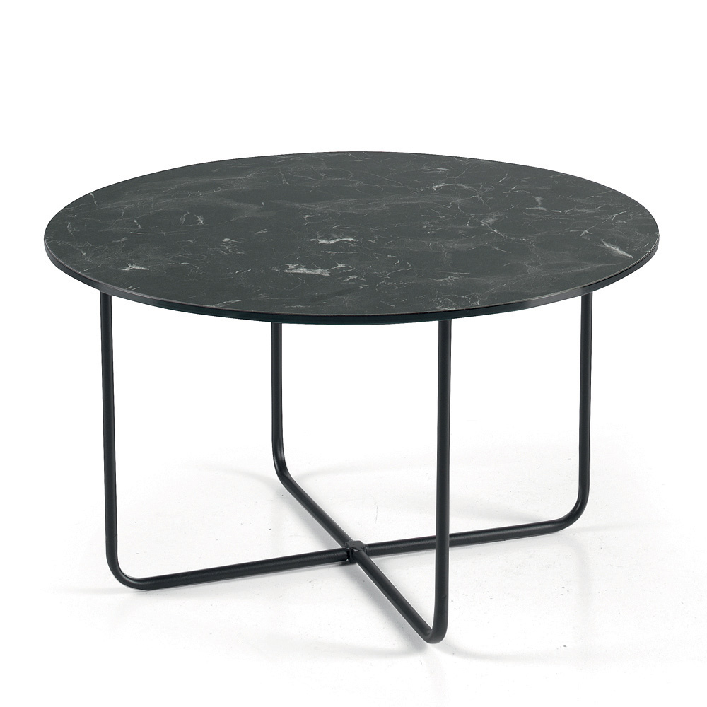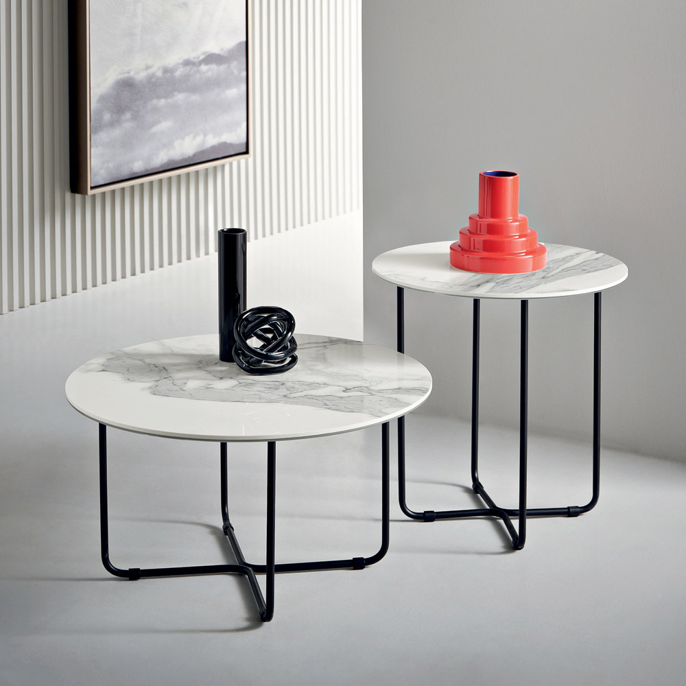 Made in Italy designer coffee table with metal frame and glass or marble-effect ceramic top.