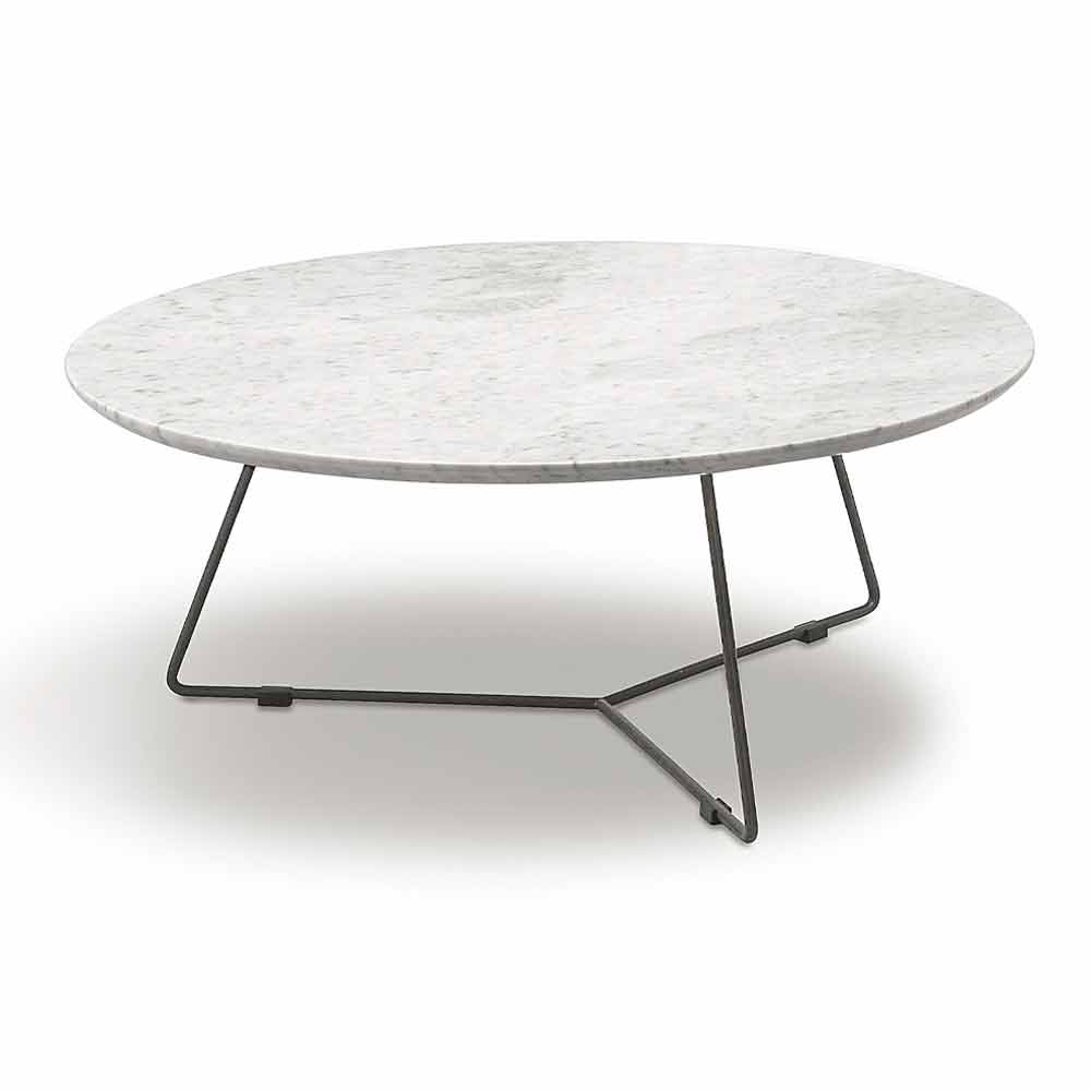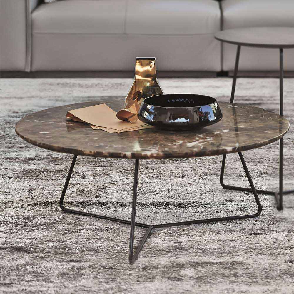Coffee table made in Italy with anthracite finish painted metal structure on which the round marble top rests. Characterized by an extremely informal design, this article for furnishing the living area proves to be versatile and with a transversal style, therefore easily combinable with the most varied modern furnishing situations. The perfect combination between the timeless elegance of marble and the undisputed modernity of metal allows you to create a coffee table that embodies functionality and design, fundamental elements to be able to complete the furniture of your living room in an original and avant-garde way.