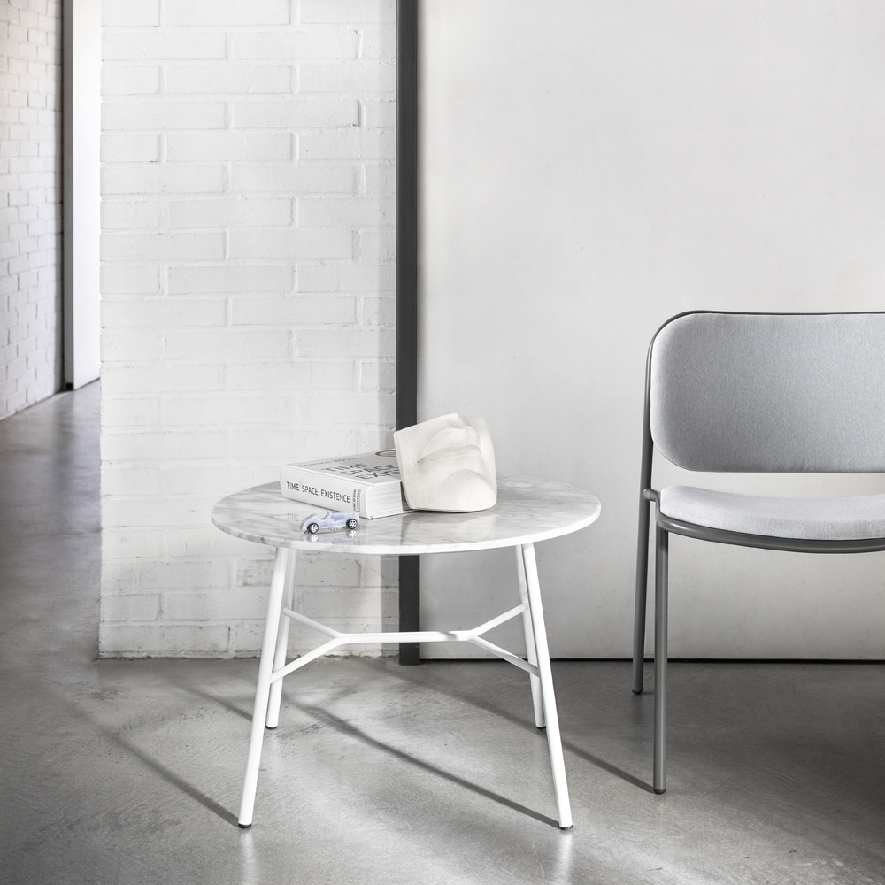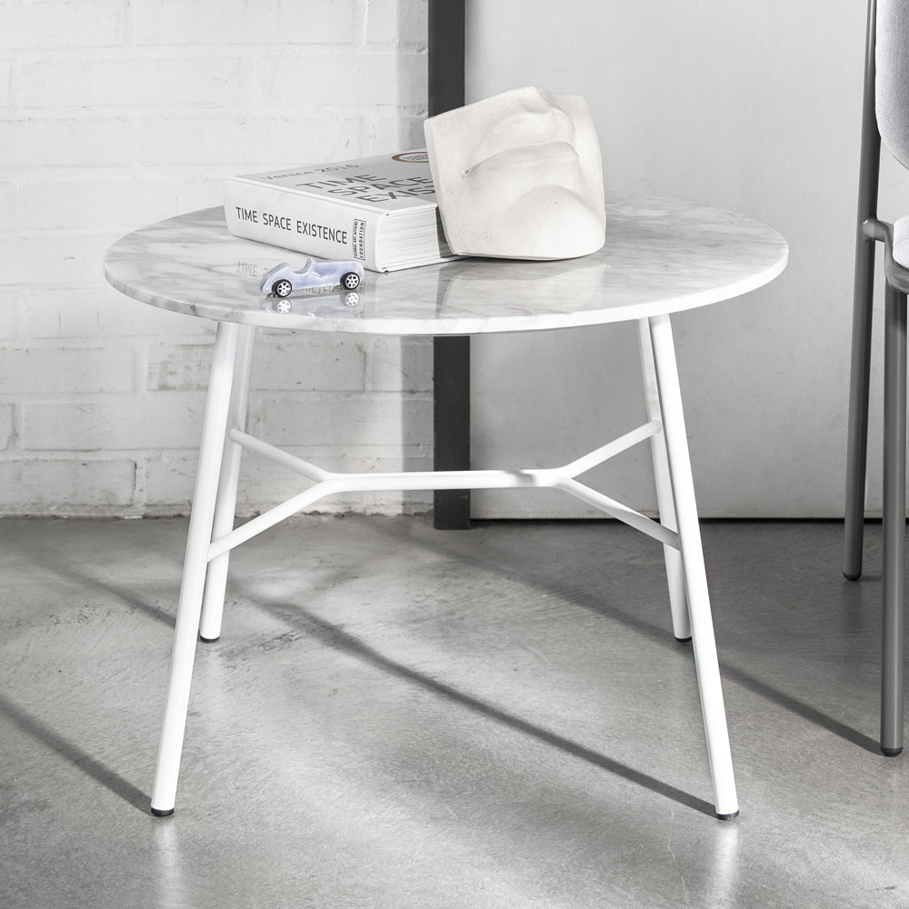 Coffee table entirely made in Italy with round marble top and painted metal structure . An original and versatile piece of furniture that arises from the need to furnish in an exclusive and refined way domestic living areas but also lounge areas in hotels and contract environments such as bars and restaurants. A coffee table that expresses through its simple and minimal shapes all the elegance of marble and the modernity of the metal base, creating a furnishing solution capable of conquering the center of attention thanks to its eclectic personality and its innovative character .