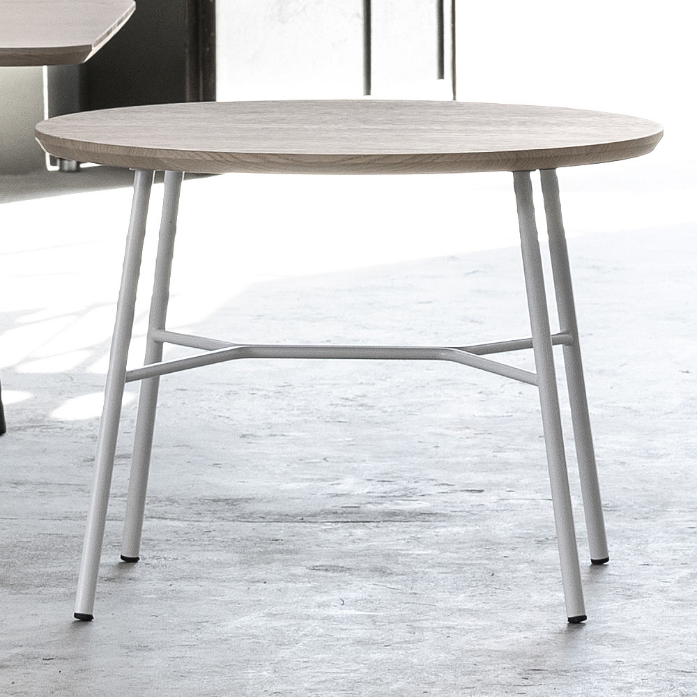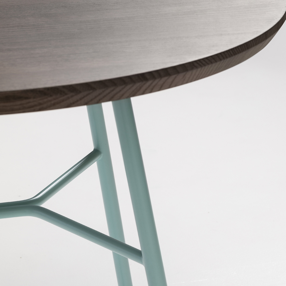 Coffee table entirely made in Italy with round solid wood top and painted metal structure . A piece of furniture that expresses through its simple and minimal shapes all the elegance and majesty of solid wood and the modernity of the metal base, creating a perfect combination of styles and giving life to a furnishing solution capable of conquering the center. of attention thanks to its contemporary personality and its eclectic character . An original and versatile piece of furniture that arises from the need to furnish in an exclusive and refined way domestic living areas but also lounge areas in hotels and contract environments such as bars and restaurants.