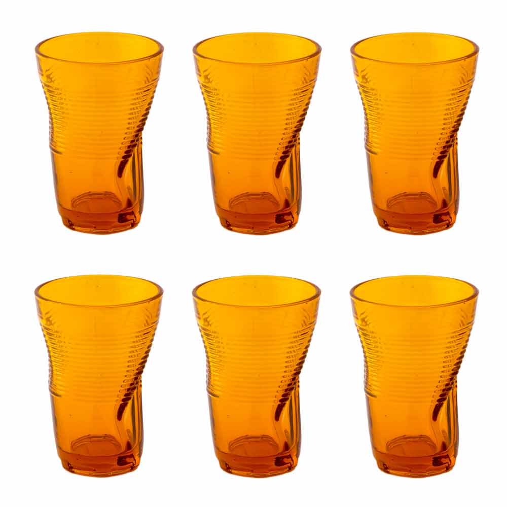They catch the eye thanks to the modern design with the characteristic crumpled effect with raised stripes. They are robust and versatilecolored glass glasses , ideal for serving your drinks and any type of drink, both cold and hot. Stackable , dishwasher safe and resistant to handling during drying.