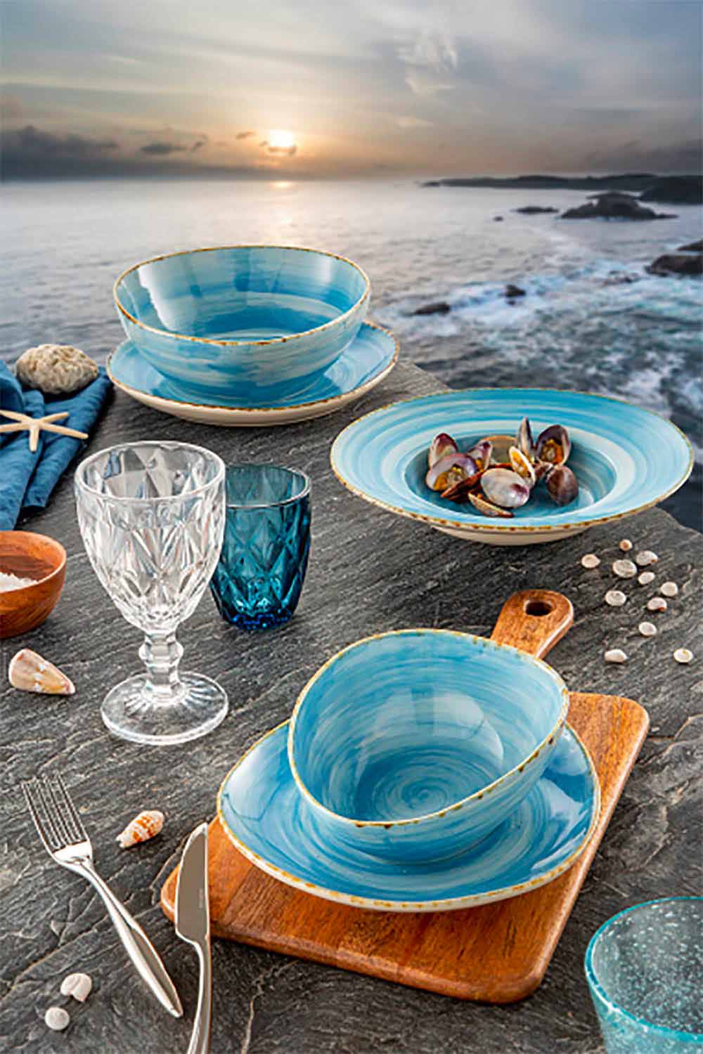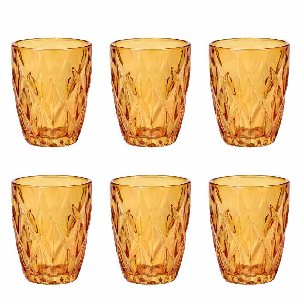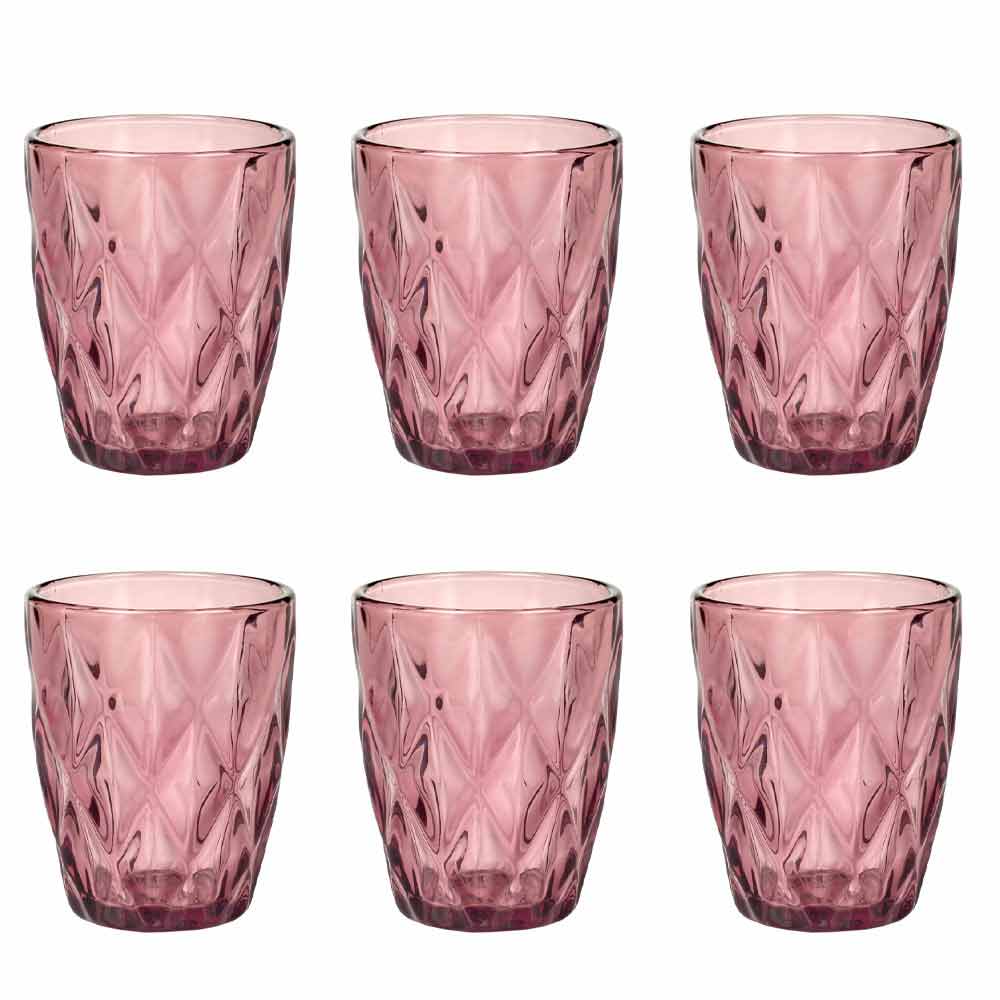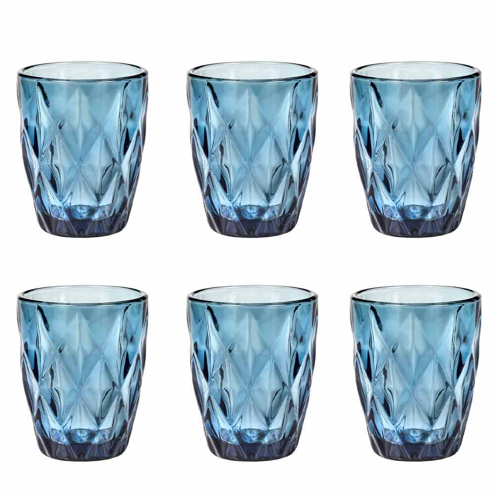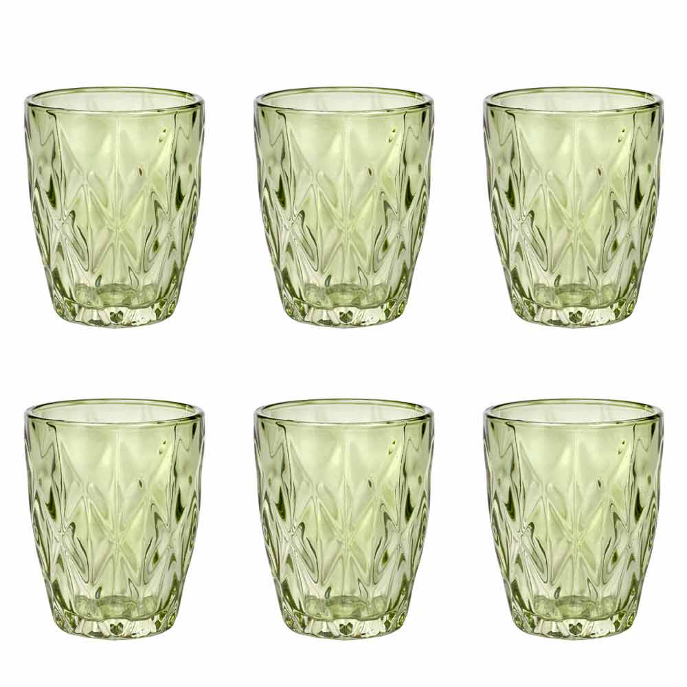 The colored glass glasses bring a touch of elegance and sophistication to the table, thanks to the precious diamond carving and the brilliance of the material. In the transparent version or in the 6 bright colors available, you can find all the combinations you want, to give contrast and color to the dishes on the table, giving life to always new tables. A multicolor version is also available for an unprecedented fusion effect.