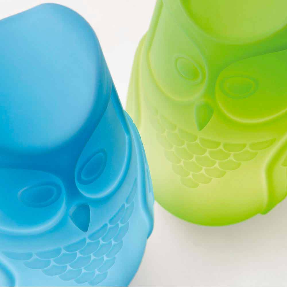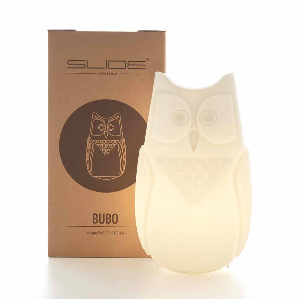 Colored owl-shaped table lamp Slide Bubo, made in Italy