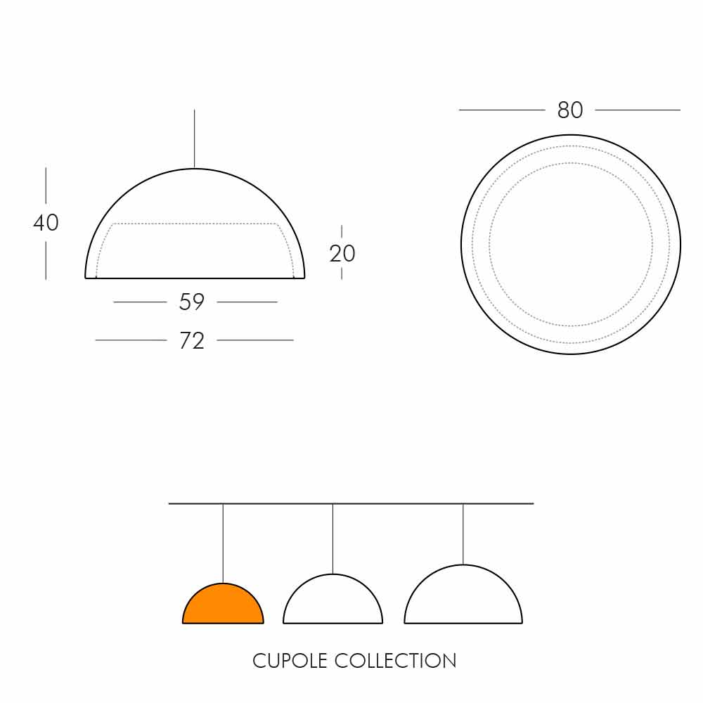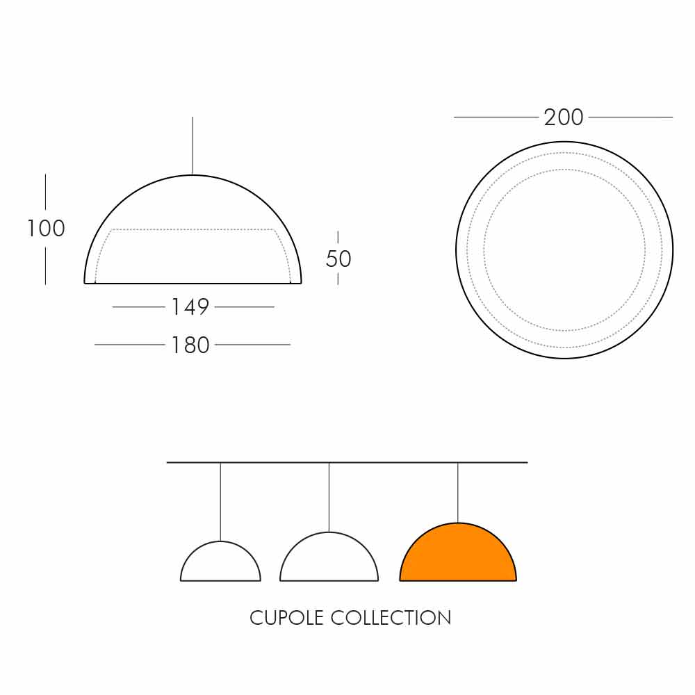 Cupole is a suspended half sphere lamp perfect for any indoor environment. Ideal furnishing accessory to give originality and character to even the simplest and most anonymous settings.