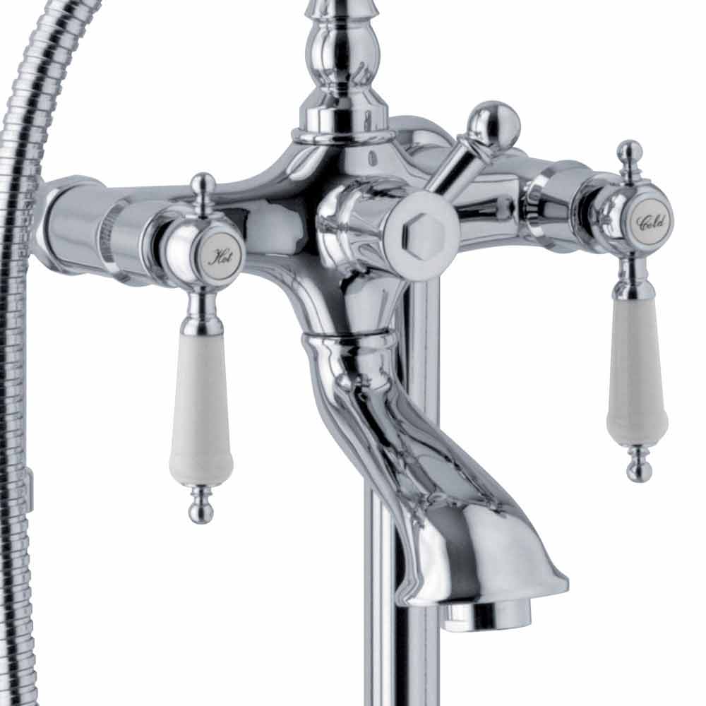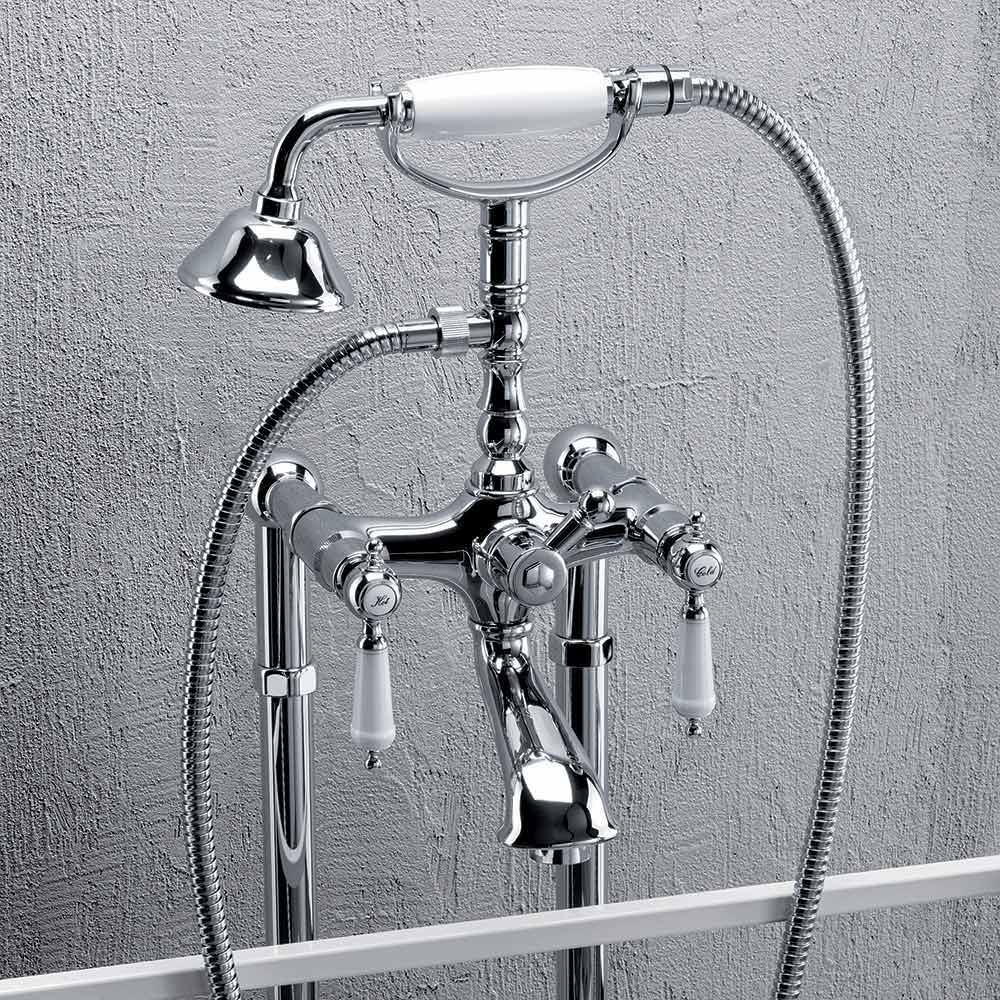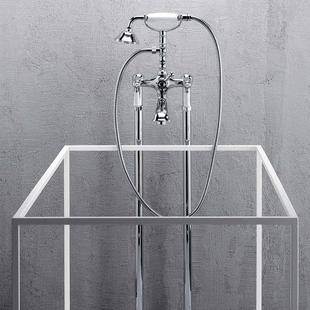 Floor standing mixer for bathtub in brass with classic Made in Italy design.