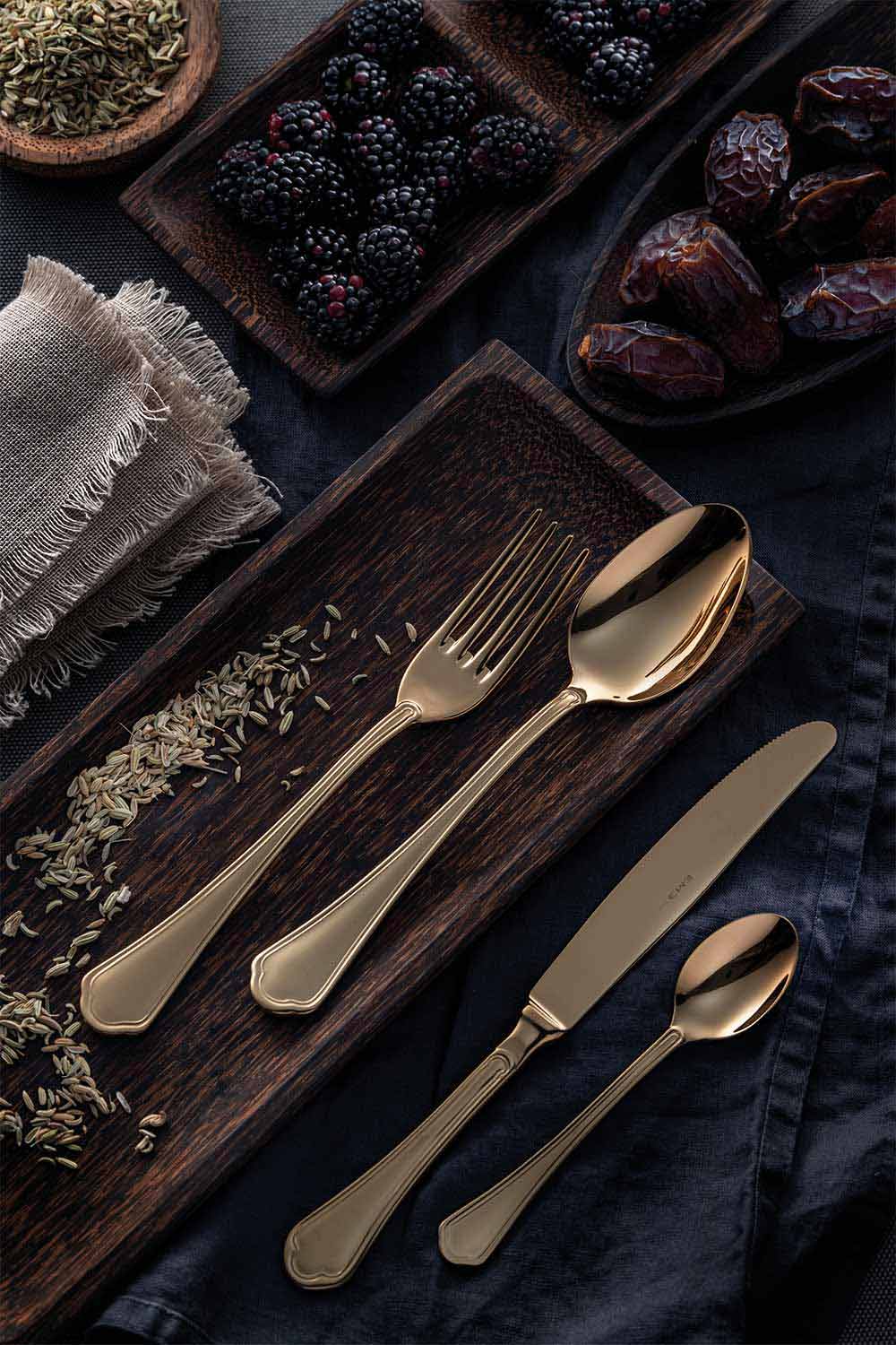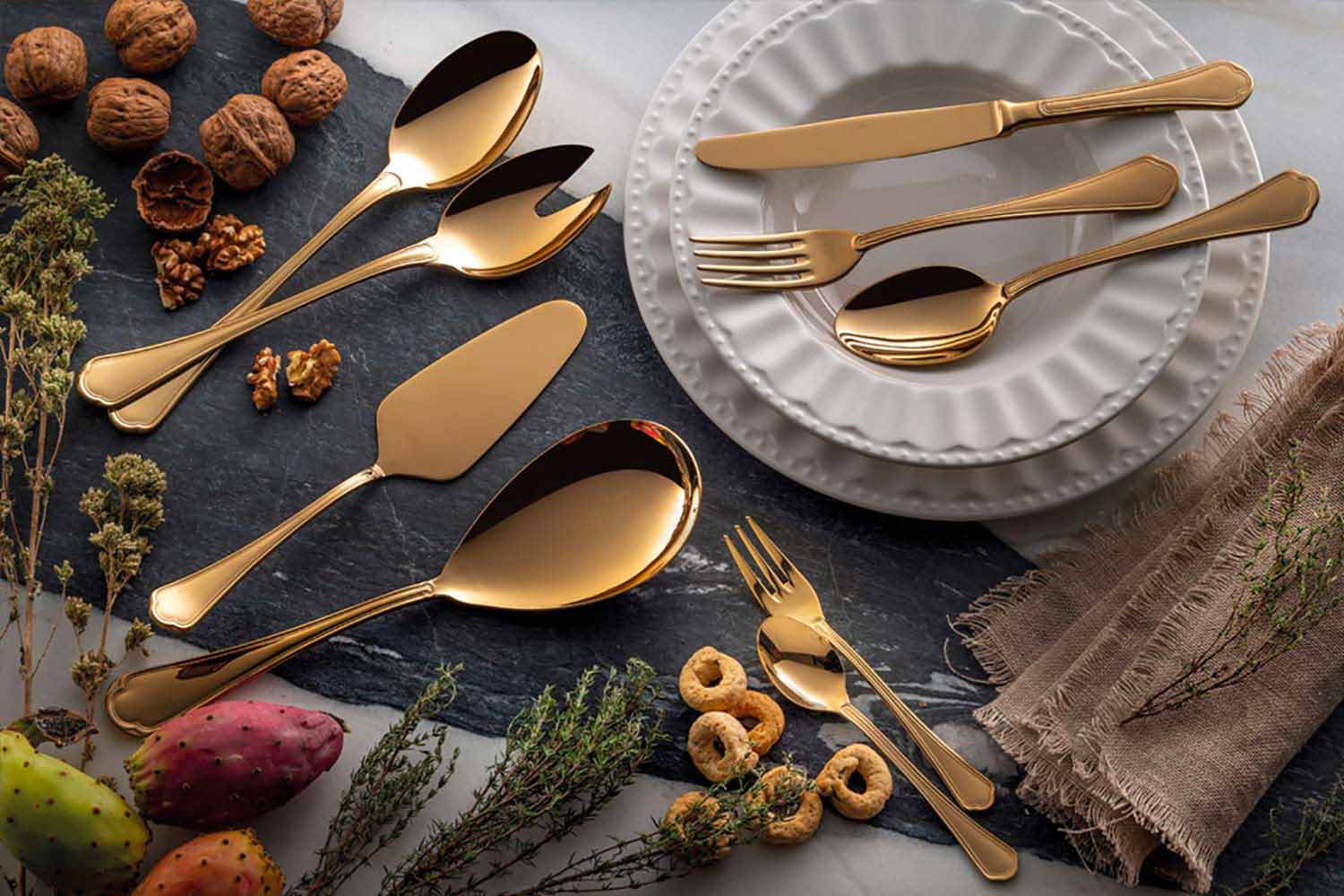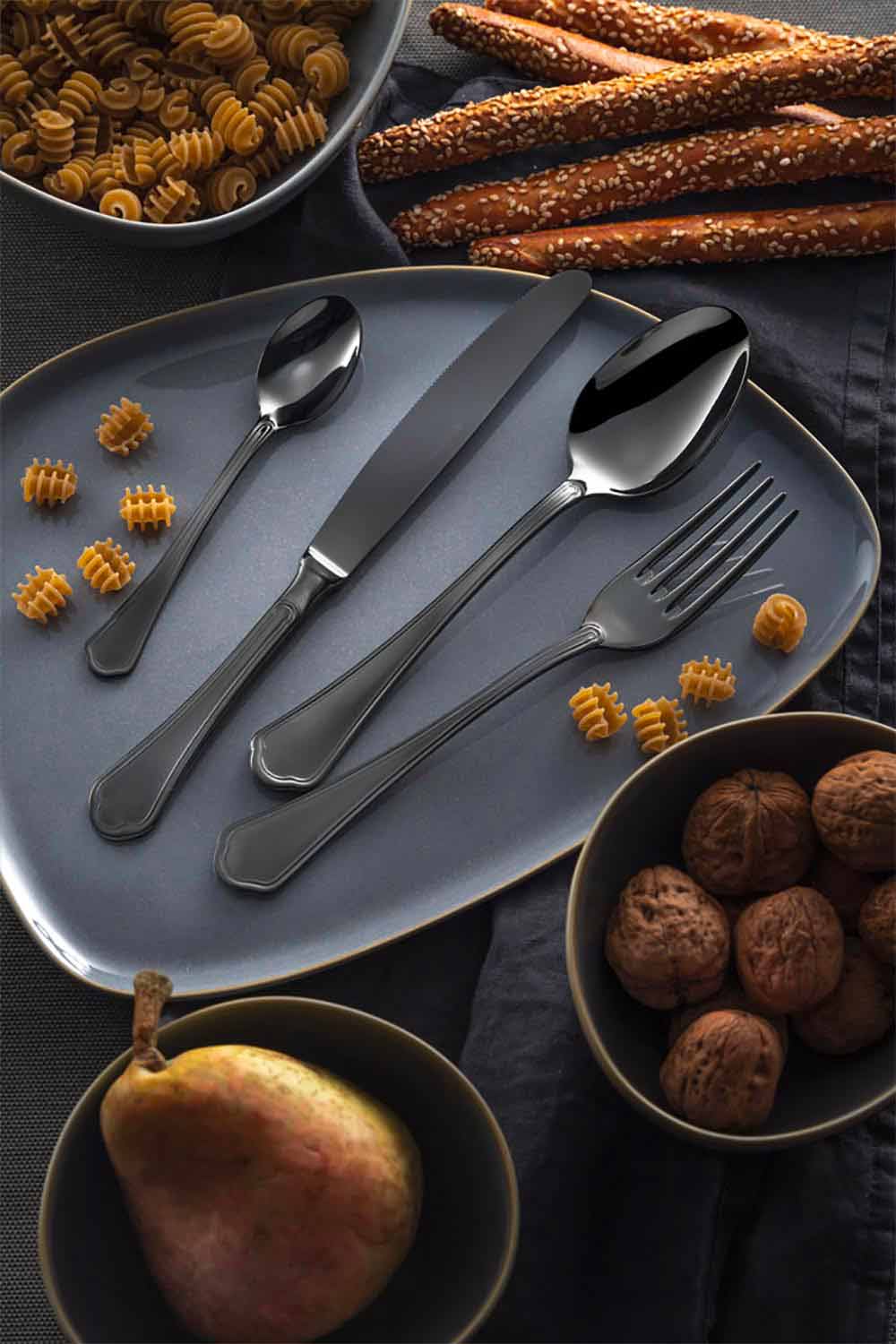24 stainless steel cutlery, complete set in 5 classic design finishes made in Italy.