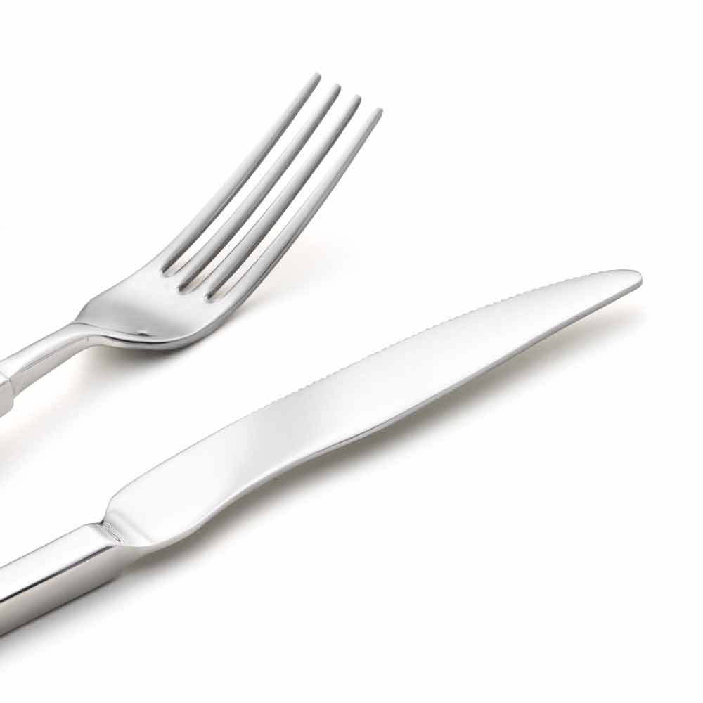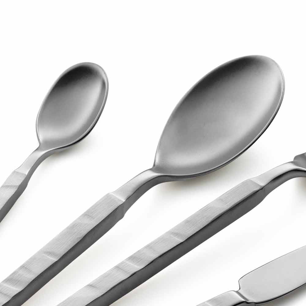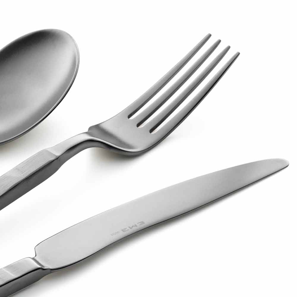 Polished or sandblasted stainless steel cutlery set, modern design made in Italy.