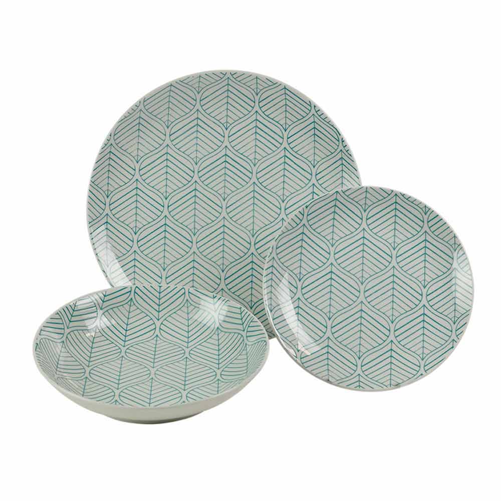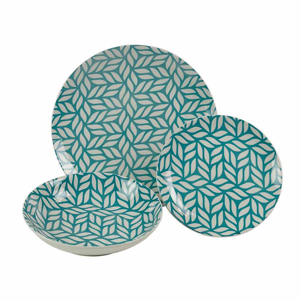 Dinnerware set in colored porcelain with elegant design decorations, 18 pieces.