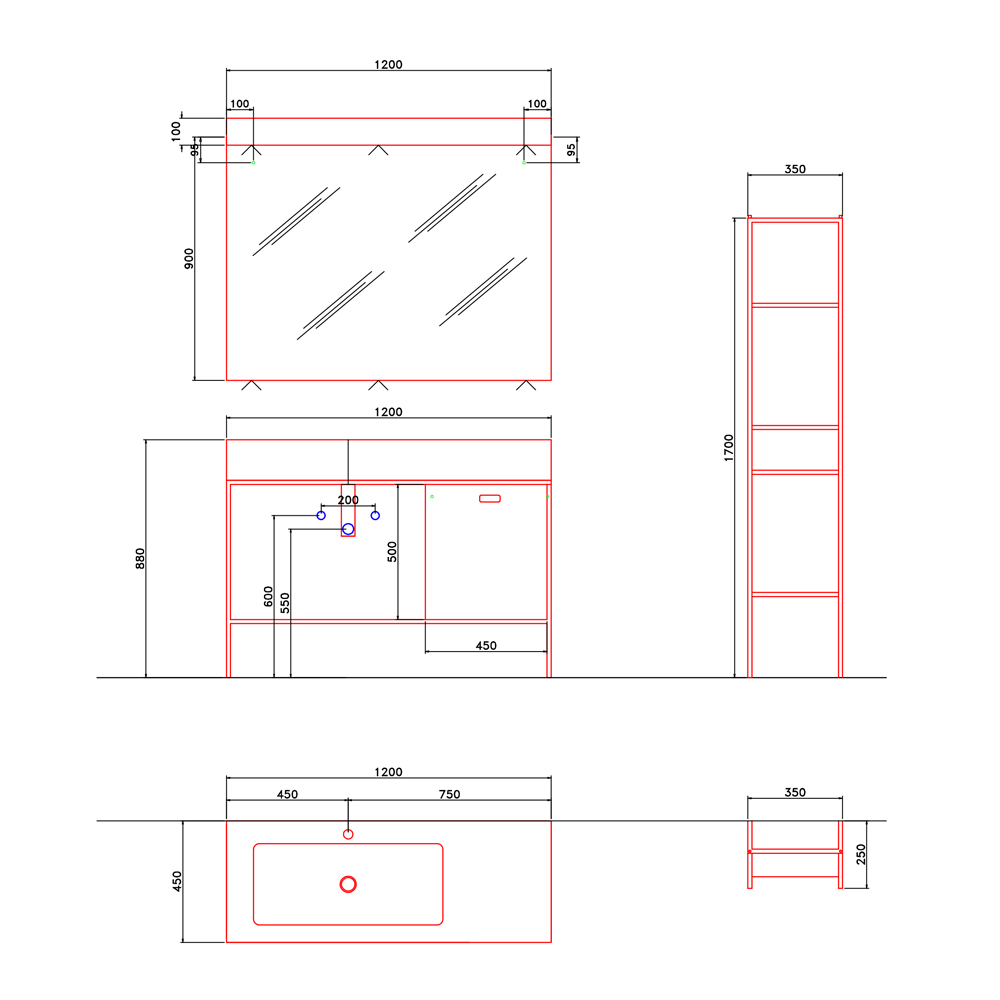 Technical features Wooden structures: in birch plywood sp. 16 mm oak veneer. Wooden fronts: in birch plywood sp. 16 mm oak veneer.